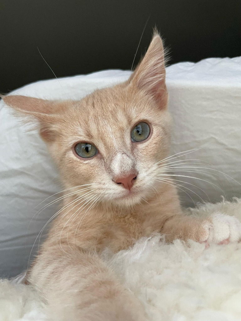 Naruto is a gorgeous cream orange tabby kitten with stunning blue-green eyes. He is very active and playful. When he is petted, he becomes a purring machine. He loves meal time and playing with his foster siblings. He would be great for any family!Available for adoption 12/12/25To inquire about adopting this cat please complete an adoption application at tinyurl.com/ccapadoptions Once you submit an adoption application, a foster will reach out within 48 hours to schedule a meet-and-greet or ask any additional questions. If you haven’t heard back within that time, please contact **adoptions@sanantonioferalcats.org** so we can follow up. If the cat you’re interested in isn’t listed in the dropdown menu, it may be pending adoption or recently adopted, but the website hasn’t been updated yet. Feel free to email us for confirmation. Thank you for choosing to adopt one of our amazing cats!