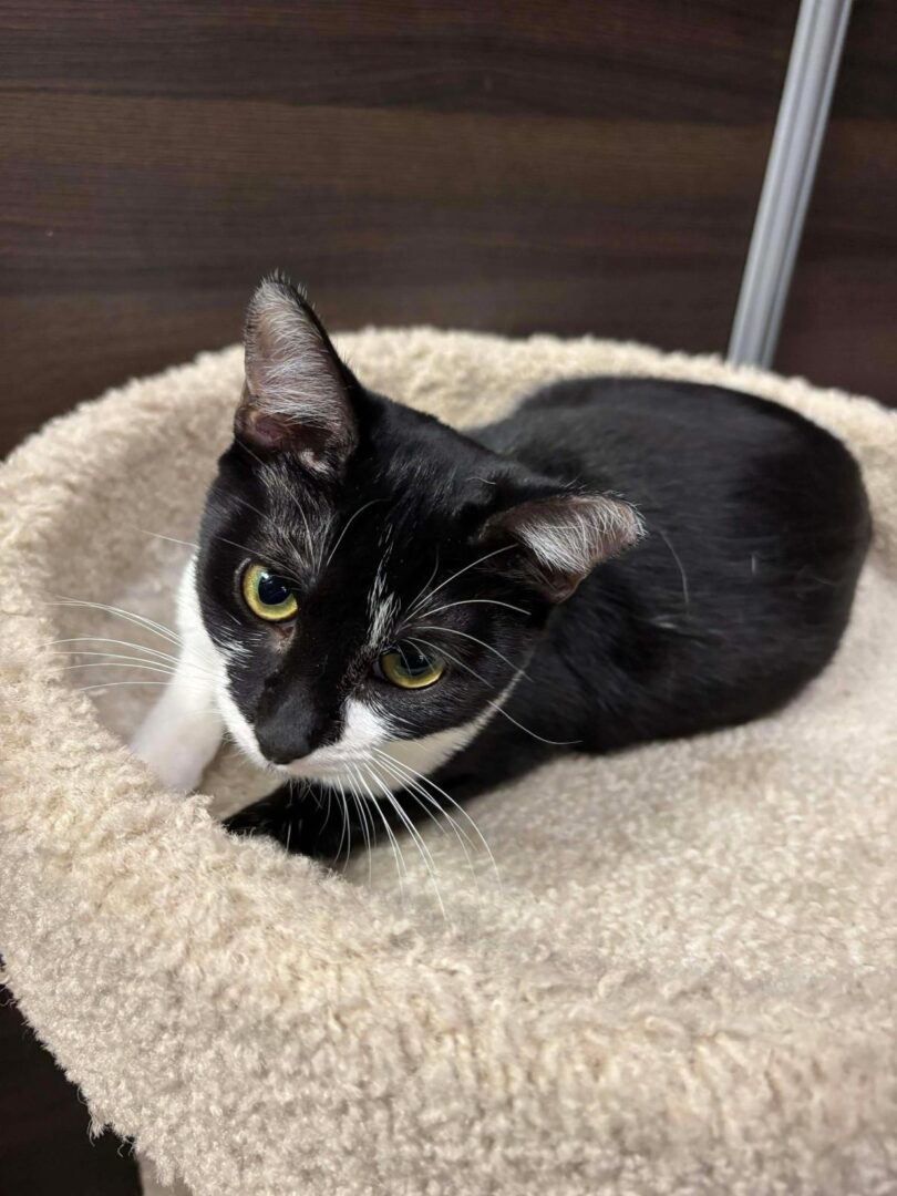 Approximate date of birth: 4/20/2025 | Hello! I’m Natasha, a curious and gentle kitten. I love exploring every nook and cranny of my world here, always on the lookout for a new adventure. Although I might be a bit shy at first, once I warm up to you, I’m all about playtime and cuddles. I’m quite smart too; I’ve learned a lot of tricks to show how much I love being petted. If you’re looking for a sweet, playful companion to share in gentle moments and lively play, I’m your girl. Why not bring me home? I promise to fill your days with joy and affection. | Sociable with cats: Likes with proper introduction. | Sociable with dogs: Unknown but optimistic (has not met a dog). | Sociable with kids: unknown but optimistic.| Health information: All cats and kittens are spayed and neutered, preventatively dewormed, and microchipped. In addition, they are FeLV/FIV tested and vaccinated as appropriate by age. | Interested in adopting? Apply to meet and adopt. | How to apply: please fill out application at https://www.savingonelife.org/adopt/apply/