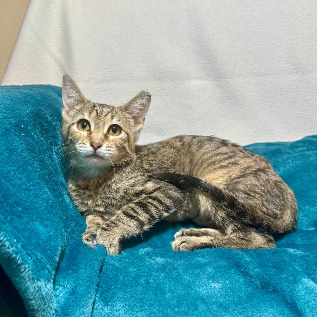 Navie is a gentle little lady with a heart full of love and a purr that’s surprisingly loud for such a sweet, quiet kitten. She has the softest disposition- calm, affectionate, and happiest when she’s curled up close to her favorite human.This darling girl is the kind of kitten who will truly blossom in a loving home where cuddles are plentiful and kindness is the norm. If you’re looking for a tender, affectionate companion who shows her love in the gentlest ways, Navie is ready to go home with you today!To inquire about adopting this cat please complete an adoption application at tinyurl.com/ccapadoptions Once you submit an adoption application, a foster will reach out within 48 hours to schedule a meet-and-greet or ask any additional questions. If you haven’t heard back within that time, please contact **adoptions@sanantonioferalcats.org** so we can follow up. If the cat you’re interested in isn’t listed in the dropdown menu, it may be pending adoption or recently adopted, but the website hasn’t been updated yet. Feel free to email us for confirmation. Thank you for choosing to adopt one of our amazing cats!