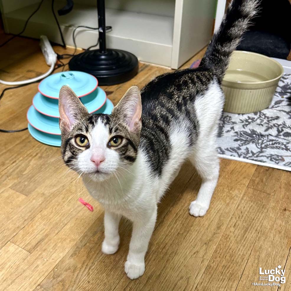 Please contact Lauren McCarty (laurenmc@luckydoganimalrescue.org) for more information about this pet.Handsome Nebula needs a forever home!NEBULA NEEDS A FOREVER HOME!!!! Come meet Nebula and other great adoptable cats this Sunday (02/09) from 12-3 pm at the PetSmart in Rockville, MD (5154 Nicholson Ln, Kensington, MD 20895)! Name: Nebula Best Guess for Breed: Domestic Short Hair Best Guess for Age: 4.5 months (Est. DOB: 9/11/24) Sex: Male Approximate Weight: 6.3 lbs a/o 2/3 Coloring: Brown & White Tabby Type of Hair: Short Gets Along With: With proper integration, Nebula will likely get along with other cats, dogs & kids! We’re happy to help with tips & tricks.Lives With: Nebula, Saturn Currently Living at: foster in the DC area I am Looking For: My loving forever family! Hi! I’m Nebula, and I am a sweet kitty! I won’t ask for much- just some love, cuddles and lots of toys so I can run and play and be myself. What My Foster Says About Me: Coming soon! TO ADOPT: The adoption fee for this cat is $200 ($350 for two cats adopted together), which includes the cost of routine vetting. If you are interested in adopting, please complete the Adoption Questionnaire online at bit.ly/adoptaluckycat Lucky Dog Animal Rescue does our best to provide accurate information about the cats we have for adoption. That said, we cannot make any guarantees about age, breed or temperament. Thank you for contacting Lucky Dog Animal Rescue and helping to save a life! Please visit us online at www.luckydoganimalrescue.org . BE A FOSTER!!! Fosters make it possible for Lucky Dog Animal Rescue to save and care for homeless and abandoned dogs! To learn about fostering, please contact fostering@luckydoganimalrescue.org BE A SPONSOR!!!! Sponsors help Lucky Dog support the many dogs we save. To learn more about sponsorship, please contact info@luckydoganimalrescue.org!