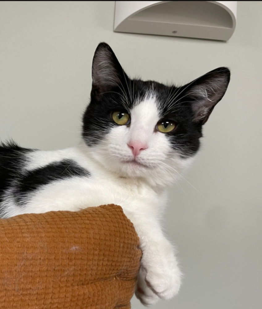 Nellie is a sweet and playful kitten who came into our rescue with her two brothers. She had already lived in 2 places before being placed in a foster home where she is still learning to trust people. She is gaining confidence, though, and her foster humans are seeing her shyness fade away a little at a time. She will be fine in a new home with adopters who will give her the time and space she needs to adapt to her surroundings. Nellie is very chatty, especially when you are preparing her meals. She'll chase toys and treats and rough house with her brothers. She loves to watch the birds at the feeder from a window perch and hangs out in her cat tree when she's ready for a nap. Nellie is bonded with her big brother Batman and both are good with other cats and are getting used to the dogs in her foster home. These two buds will entertain you for hours with their playfulness and will love you as much as you love them.