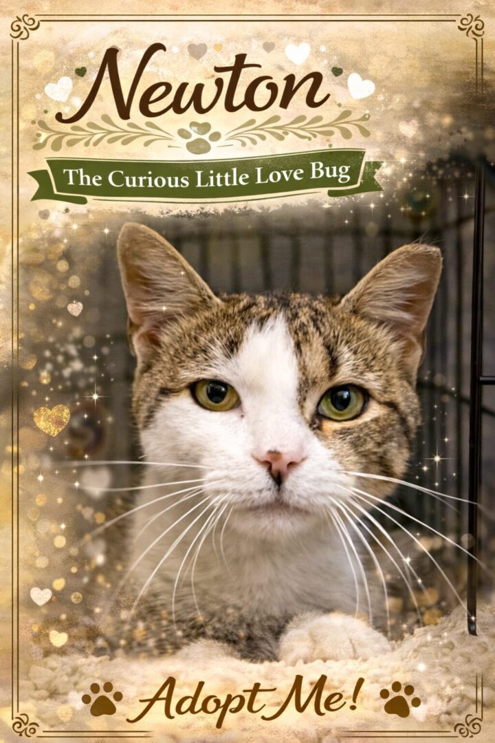 Newton – The Curious Little Love Bug . Newton is an absolutely handsome brown tabby with white, and just wait until you notice his adorable little freckle on his nose and his cute ‘tabby leg warmers’ — it’s impossible not to fall in love. . This sweet boy is incredibly friendly and full of personality. The moment you meet him, he’ll come right up to the front of his cage, ready to say hello and soak up attention. Newton loves to reach his paws out for pets, making sure you don’t miss him! He’s a big fan of affection—he’ll purr while you talk to him and gives the sweetest little love blinks that will absolutely melt your heart. . Newton is also very curious and engaged, always interested in what’s going on around him and eager to be part of it. He’s the kind of cat who will want to be involved in your daily life and be your little companion. With his loving nature, playful curiosity, and irresistible charm, Newton would make a wonderful addition to just about any home. If you’re looking for a cat who will greet you, love you, and keep you company, Newton is your guy. . Please submit our no-obligation Adoption Application for a meet and greet or to adopt: https://forgottencats.org/adoption-application/. Not ready to adopt? Please consider fostering: https://forgottencats.org/foster-a-cat/. Thank you! (Foster: Trainer)