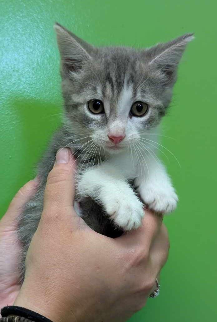 Hello, my name is Nickie! I am an 8 week old domestic shorthair kitten that weighs approx. 1.5lbs. I was surrendered to RAC due to my previous family having too many animals. I am now looking for my furever home! I am on dry kitten food and using the litter box well. If you are interested in making me part of your family, please submit and adoption application located here: https://rockwalladoptions.com/adoptfoster/adoption-application/. RAC staff will be in touch with approved applicants in order to schedule a meet and greet. My adoption fee is $75 which includes my spay, rabies, microchip, first FVRCP booster, and dewormer. I am scheduled to return to RAC on Wednesday, 7/9/25, for my spay and rabies vaccine. All animals, unless otherwise noted in their description, are at 1825 Airport Rd. in Rockwall, TX. Hours of operation are Monday-Friday 9 am to 6 pm and Saturdays 9 am to 5 pm. For questions, please call 972-771-7750 ext. 2 or email info@RockwallAdoptions.com. IMPORTANT NOTICE: All shelter animals are required by Texas state law to be spayed/neutered. RAC completes this procedure at the age of 12 weeks. If you are adopting a pet under the age of 12 weeks or an animal that has not yet been spayed or neutered, you will be required to return the pet to our facility on the agreed upon date set at the time of adoption. This policy is non-negotiable and violation of this health code is a criminal offense.