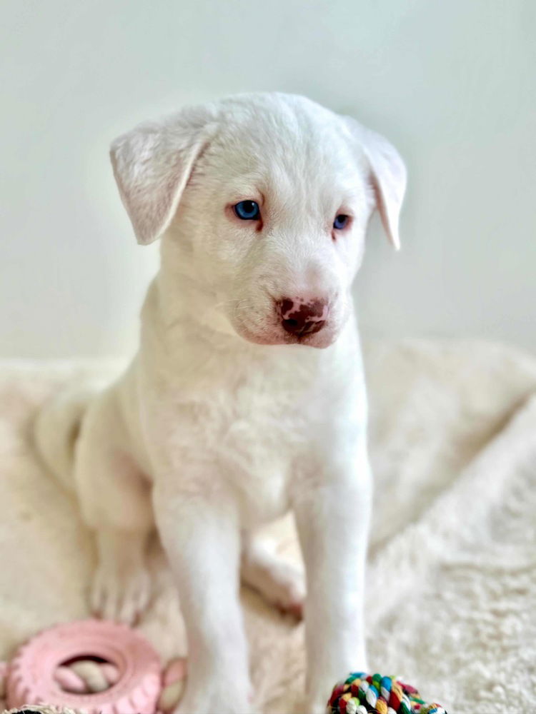 Pretty, playful, and full of love — meet Nila. This 7-week-old Catahoula/Pyrenees mix has a gorgeous white coat and the bluest eyes you’ve ever seen. Nila loves to play, explore, and then curl up for cuddles when the fun is done. She’s ready to bring joy, laughter, and puppy love to one very lucky family. Interested in adopting this pet? Please contact us at questions@awishforanimals.org for more info.