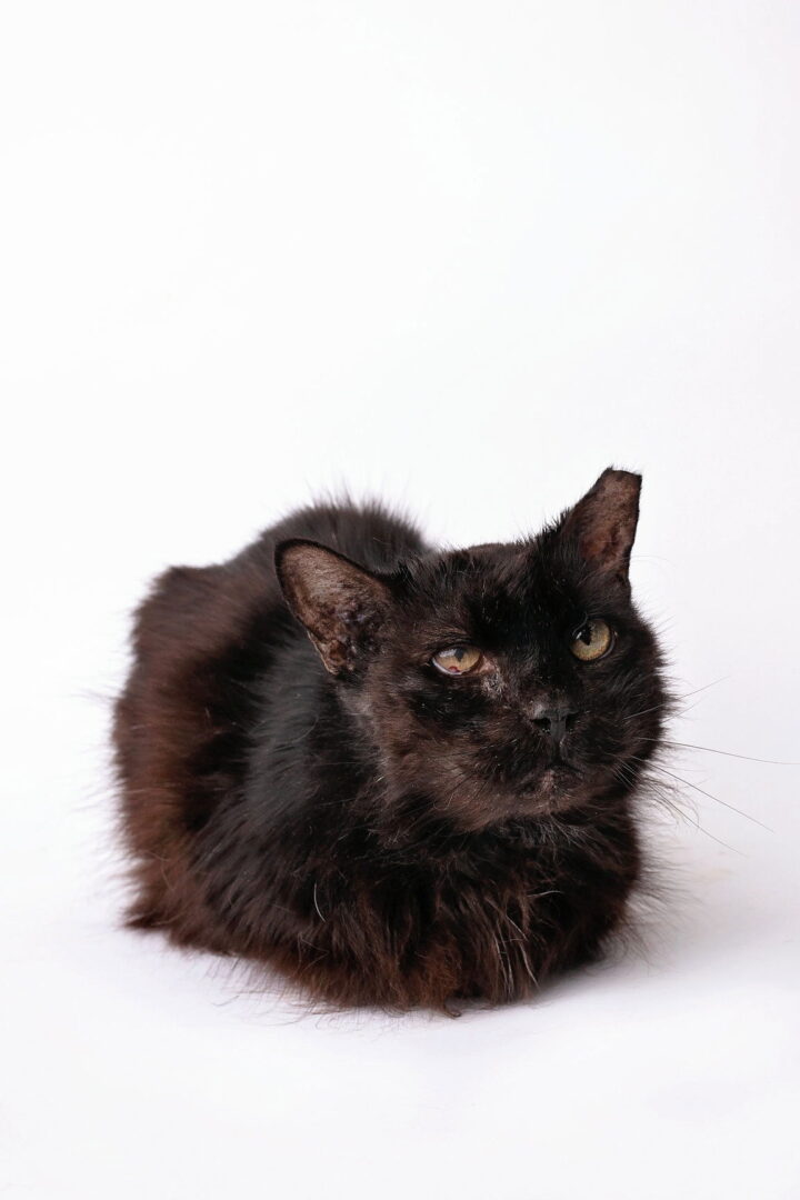 See Ninja’s HomepageGo to our official websiteYou can fill out an adoption application online on our official website.Estimated Date of Birth: 11/17/2013 Ninja is the most gentle, fluffy black senior with a heart as soft as his fur. Ninja has had a very hard life on the streets, and it shows in his scraggly good looks and soulful eyes. When he was found, he was suffering from painful cysts and polyps in his ears, along with chronic upper respiratory symptoms. Thanks to much-needed treatment, his ears are feeling so much better, and Ninja is finally getting a taste of comfort and care. While he may have occasional upper respiratory flares, Ninja is otherwise enjoying life and making up for lost time. His favorite activities include relaxing, soaking up love, and simply being safe. He’s not looking for chaos or adventure—just a low-key, peaceful forever home where he can nap, be cherished, and know he’ll never have to fend for himself again. Ninja is the kind of cat who quietly steals your heart. He doesn’t need perfection—just patience, kindness, and someone willing to love a senior who truly deserves it. So… who has a heart (and a cozy spot) for this sweet, scruffy survivor? Ninja is ready to spend his golden years being loved the way he always should have been. Adoption fee $150 Ninja is neutered, microchipped, up-to-date on vaccines and has tested negative for FIV and feline leukemia.