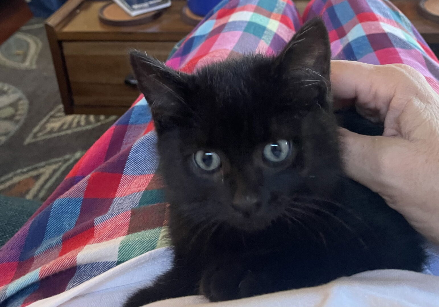 See Nolan Void’s HomepageGo to our official websiteYou can fill out an adoption application online on our official website.Nolan Void is a little black fuzz ball with powdered, sugar lips. Although he is black, you can see tabby striping on his sides. He has big green eyes and cute ears. Nolan always comes to see his foster right away when they go into their cat room. He is super sweet and friendly. He craves love and affection but doesn't want to be held all the time. Nolan is high energy and loves to play. He enjoys climbing up and down the cat tower. He also enjoys sleeping on the cat tower. He is so much fun and you will immediately fall in love when you meet him. Nolan enjoys Churus and Temptation kitten treats. Nolan is a perfect little kitty and would make a great family member for anyone. According to the foster family, Nolan is bonded with his brother Quest Love and the two should be adopted together. All of our cats and kittens are spayed/neutered, microchipped, tested for FIV/FELV , dewormed, and up to date on rabies and distemper vaccines If you are interested in adopting, please complete an Adoption Application form at www.locrami.com under How to Adopt.