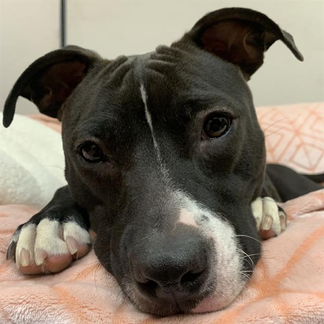 Nora is a beautiful black-and-white pit bull with a smile that could brighten anyone’s day. She’s equal parts gentle cuddlebug and playful adventurer, always ready for a walk, a game of tug, or the chance to flop onto your lap like she’s still a tiny puppy. With her expressive eyes and wagging tail, Nora has perfected the art of winning hearts. She’s loyal, affectionate, and endlessly enthusiastic about the people she loves. Whether she’s napping in a sunbeam, greeting visitors with wiggles, or showing off her favorite toy, Nora brings joy wherever she goes. Friendly, loving, and always up for a good time, Nora is the kind of dog who turns ordinary moments into memories. She doesn’t just join a family—she becomes the heartbeat of it.If this dog has been successful in our play groups it is not a guarantee that a dog will be social with other dogs in their home or in public settings. Dogs are individuals and have personality conflicts, just like us. Play groups do not guarantee that territorial or resource guarding issues will not surface in the home. While play groups do help us get to know the dog’s better, once they are adopted their new environments and new relationships will influence their behavior in ways we cannot predict.The Adoption Fee Includes:- initial canine distemper combination vaccination- first worming or stool check- rabies vaccination (for animals over 3 months of age)- 24 Petwatch microchipping- flea treatment/preventative- spaying or neutering-heartworm testingAdoption fee: $135.00Per state law, ALL ADOPTERS must purchase a non-refundable 2025 dog license at time of adoption for any canine three months and older. The cost of the license is $9.20. (Senior Citizen or Person with Disability-$7.20)Leash and collar included