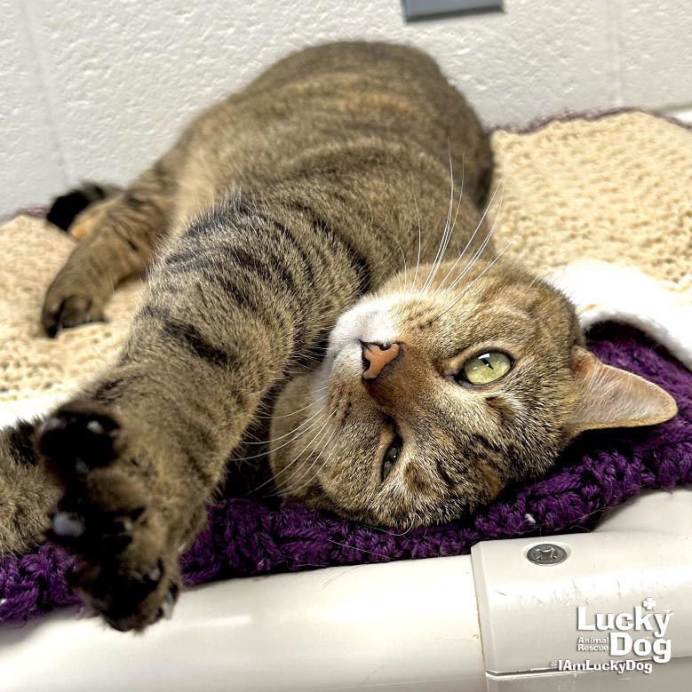 Please contact Brittny Parsells-Johnson (brittny.parsells-johnson@luckydoganimalrescue.org) for more information about this pet.The Stars are Aligned between You and Nova! NOVA NEEDS A FOREVER HOME!!!! Name: Nova Best Guess for Breed: Domestic Short Hair Best Guess for Age: 3 years (est DOB 3/18/22) Sex: Female Approximate Weight: 9.2lbs (as of 3/25) Coloring: Brown tabby Type of Hair: Short Gets Along With: Nova gets along very well with her roommate, Astro. With proper integration, she will likely get along with dogs and kids. We’re happy to help with tips and tricks! Currently Living at: Shelter down south… coming to the DC area soon! I am Looking For: My loving forever family! Hi! I’m Nova, and I am a sweet girl! I won’t ask for much- just some love, cuddles and lots of toys so I can run and play and live my best life. About me: Oh hey, I’m Nova! Don’t mind me, I’m just investigating everything in sight. That box? Mine now. That thing you just set down? I must knock it over immediately. If there’s an adventure to be had, you better believe I’m leading the way! I’m a mischievous little explorer who loves getting into just enough trouble to make life interesting—especially if it means getting your attention. And trust me, I love attention. If you’re not watching me, I’ll find a way to change that!But after a long day of causing adorable chaos, I do have a soft side. Once I’ve explored every possible nook and cranny, I like to stretch out in a warm sunbeam and recharge for my next round of antics. I’m full of personality, a little bit of sass, and a lot of love. If you’re looking for a cat who will keep you entertained, keep you on your toes, and keep your heart full, then congratulations—you just found me! TO ADOPT: The adoption fee for this cat is $200 ($350 for two cats adopted together), which includes the cost of routine vetting. If you are interested in adopting, please complete the Adoption Questionnaire online at bit.ly/adoptaluckycat Lucky Dog Animal Rescue does our best to provide accurate information about the cats we have for adoption. That said, we cannot make any guarantees about age, breed or temperament. Thank you for contacting Lucky Dog Animal Rescue and helping to save a life! Please visit us online at www.luckydoganimalrescue.org . BE A FOSTER!!! Fosters make it possible for Lucky Dog Animal Rescue to save and care for homeless and abandoned dogs! To learn about fostering, please contact fostering@luckydoganimalrescue.org BE A SPONSOR!!!! Sponsors help Lucky Dog support the many dogs we save. To learn more about sponsorship, please contact info@luckydoganimalrescue.org !