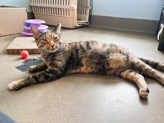 Meet Nova! This playful, spirited girl came to us after her previous owner could no longer care for her, and she’s now ready to start her next chapter with a forever family. Nova is full of energy and absolutely adores her toys—she’s quickly won the hearts of our volunteers with her bouncy, fun-loving personality. She’d love a feline friend who can keep up with her enthusiastic playstyle, though slow introductions will help set everyone up for success. After a good round of zoomies, Nova is more than happy to settle in your lap for some snuggles and affection. She’d thrive in a home where she has safe indoor/outdoor access and plenty of love to go around. If you’re looking for a cat who brings both excitement and sweetness, Nova might be your perfect match!