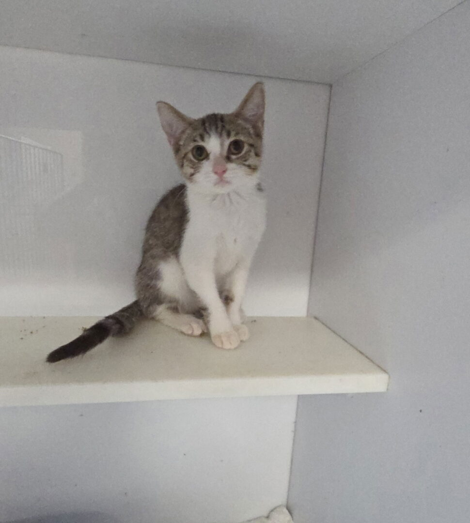 Nova is about 12 weeks old. She and her brothers came to us with their mom and auntie…… Nova is the more reserved of the 3 kittens. She is very calm, sweet and loves to play but she definately has a reserved side. She loves to romp and play with her brothers and would likely enjoy another kitty companion but should also do ok being the only princess She is SOOOO MUCH CUTER IN PERSON Visit http://greatpets.org/cat-adoption-application for an online application Location: Foster Home but will soon be at the Aliso Viejo Petsmart Adoption Center Nova’s $200 adoption fee includes his vet exam while in our care, felv/fiv test, fecal, neuter surgery, microchip, flea treatment, and current vaccinations (age appropriate).
