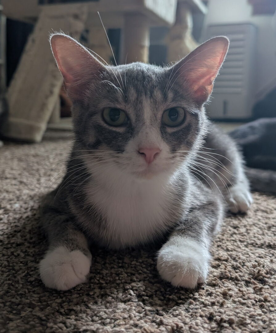 We stepped in to help Nugget because there are so many kitties in horrific situations that need rescue and the more awareness and help we can offer these cats in dangerous situations, the more can be saved. Meet Nugget A Tender Soul with So Much Love to Give Nugget is a 2-year-old sweetheart with a heart as soft as her fur. She may be small in size, but her capacity for love is huge — especially when it comes to her sister, Soup. These two share an unbreakable bond and will need to be adopted together. Nugget is incredibly affectionate and thrives on connection. Her favorite place in the whole world? Right on your chest, purring contentedly as if she's making up for lost time. She also adores other cats and kittens and brings a gentle, nurturing energy into any room she’s in. Nugget came from a home where love was hard to come by. She lived in a cramped apartment with several other cats and people who were struggling with addiction. The cats were often overlooked, receiving very little attention or affection. Despite this, Nugget remained soft-hearted, craving closeness and comfort. Now that she’s safe and cared for, Nugget is learning what it means to be truly loved — and she gives it back tenfold. She and Soup are looking for a quiet, stable home where they can finally settle in for good. They’ve been through a lot and deserve nothing less than a life filled with warmth, safety, and cuddles. If you're looking for a pair of deeply bonded, affectionate companions who will make your heart melt every day, Nugget is ready to be your shadow with either Ferg, Soup, or Zero. Here is a link to our application https://www.pfcatrescue.org/adoption-application/