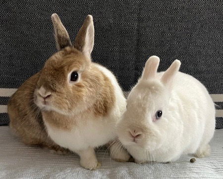 Nugget and Daisy Mae are an adorable pair of dwarf rabbits. Spayed and neutered , vaccinated .. they are ready to hop into a sweet home with a family who will love them forever, both are box trained and lovely . Affectionate little ones. These rabbits are very small and need to go to a home where there are no predatory animals. S/ N DOB 2020