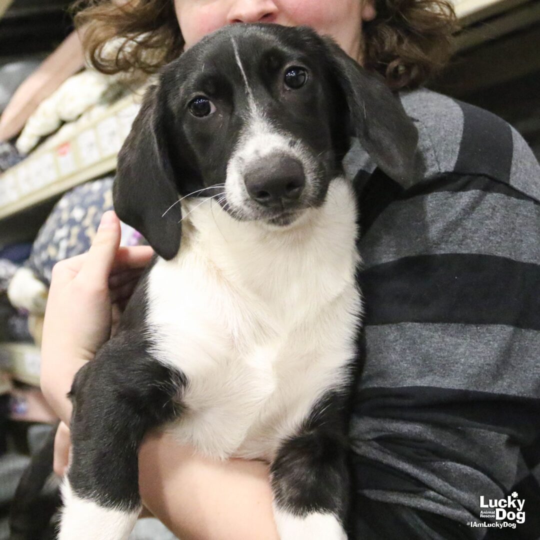 Please contact Connie Kiggins (conniek@luckydoganimalrescue.org) for more information about this pet.sweet baby girl seeking happily ever after! OAKLEY NEEDS A FOREVER HOME!!!! Come meet Oakley and other great adoptable dogs this Saturday (1/31) from 11 am -2 pm at the PetSmart in Alexandria (3351 Richmond Hwy, Alexandria, VA 22305)! Name: Oakley Best Guess for Breed: Basset hound mix Best Guess for Age: 3.5 months as of 1/8/26 SEX: Female Estimated Weight (puppies’ weights change quickly!): 15 lbs as of 1/7/26 Gets Along With: Most puppies are in the prime of their socialization window and will do well with other dogs, cats and kids so long as they receive patience and proper training. Currently Living at: DC area foster home Special Adoption Considerations: Puppies under 6 months of age need to have multiple potty breaks/exercise throughout the day. Potential adopters with a standard 8-hour workday must be willing to make arrangements to meet the needs of their puppy. Oakley is Looking For: Hi! Me and my sisters (there are four of us – Opal, Olivia, Olive, and Oakley) are satos from Puerto Rico. (Yes, that means our best guess for breed is just that – a guess – because we’re elongated with short legs!) Growing up together has been great but now we’re ready to split up and get our own human families in the DC area – we’ve talked it over and this is what we want: Play time – all those puppy zoomies! Snuggles and cuddles! World exploration! I promise to give you so many adoring gazes and kisses, and so much love and loyalty for all my days. What do you say? Do I get to grow up with you? What My Foster Says About Me: We will update this once she has spent time in foster care. Puppy Vetting Requirements: Lucky Puppies have had their age appropriate vaccines, but may not yet be “fully” vaccinated. It is the adopter’s responsibility to ensure that the remaining puppy vaccines are given at the appropriate time. Please also keep in mind that, until your puppy is fully vaccinated, they are at greater risk for illness than an adult dog. Your new puppy will need to work on their house training and will also need to go to obedience school so they can grow into a well-socialized dog! TO ADOPT: The adoption fee for this puppy is $485, which includes the cost of routine vetting and transport from the shelter. If you are interested in adopting, please complete the Adoption Questionnaire online bit.ly/adoptaluckydog Lucky Dog Animal Rescue does our best to provide accurate information about the dogs we have for adoption. That said, we cannot make any guarantees about age, breed or temperament. Thank you for contacting Lucky Dog Animal Rescue and helping to save a life! Please visit us online at www.luckydoganimalrescue.org . BE A FOSTER!!! Fosters make it possible for Lucky Dog Animal Rescue to save and care for homeless and abandoned dogs! To learn about fostering, please contact fostering@luckydoganimalrescue.org! BE A SPONSOR!!!! Sponsors help Lucky Dog support the many dogs we save. To learn more about sponsorship, please contact info@luckydoganimalrescue.org . ​