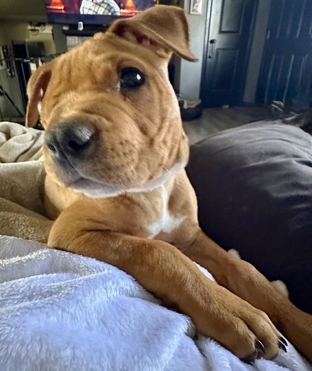 Oden is a 12 week old cute little guy with a giant personality. Oden lost his eye while he was just little guy but that has not stopped him from being a normal puppy. He is very confident and gets along with all the dogs in the house. He is working on kennel training, potty training and socializing. He walks great on a leash and does ok in the car. He is very playful and can be little nippy so no young children. His ideal family does not have cats or small dogs, they have a yard, are active, will want to spoil him with him lots of toys, dog beds, and enjoys a good snuggle on the couch. Oden will be a wonderful companion that wants to further his training and take him on hikes and lots of adventures. Put in an application at eapl.com His adoption fee is $375