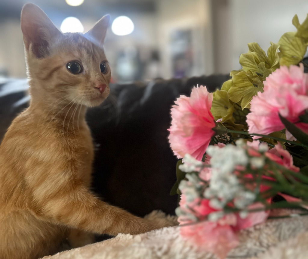 Hello! My name is Odie, and I cannot wait to meet my forever family. I am a friendly, affectionate kitty who loves everyone I meet. I enjoy playing with toys that bounce or roll, and when playtime is over, I will happily snuggle into your lap for a cozy nap. I am learning to be comfortable around dogs — I prefer a little personal space at first, but with patience and a slow introduction, I could become a wonderful companion for them too. If you are interested in adopting a CAWS pet, please fill out an online application at https://caws.org/adoption-application