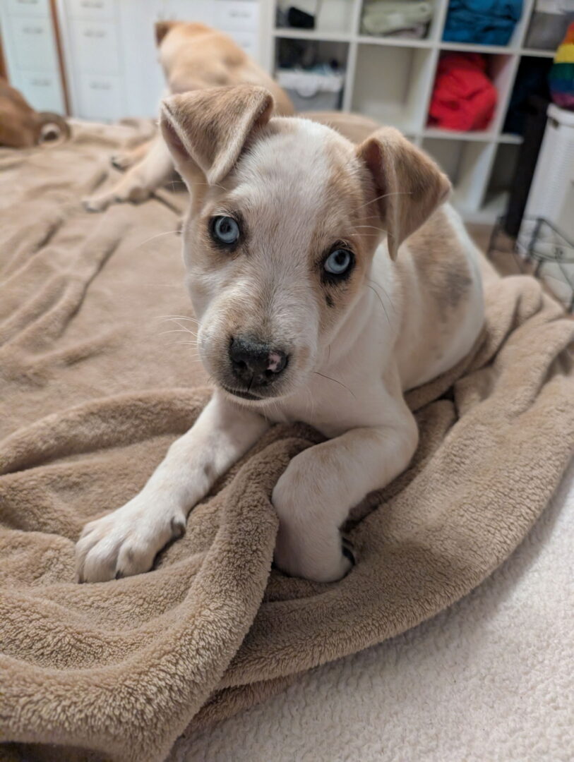 Animal Rescue of the Rockies believes every pet should find a wonderful and caring home. To ensure Olive #3 finds the best possible home, we ask you fill out our adoption application so we can learn more about you and your household. We review each application in the order submitted and will contact you within 48 hours (please check your spam folder for our emails). Olive #3| 12 weeks | Aussie Mix with a confident spark Olive is a 12-week-old Aussie mix puppy with a bold little personality and a whole lot of curiosity. At around 14 pounds, this white-and-merle girl is playful, sweet, and surprisingly fearless for her age. She loves toys, playing with her littermates and other dogs in her foster home, and happily switches between zooming around and curling up for snuggles once she’s worn herself out. Olive is resilient and adaptable—if something startles her, she recovers quickly and keeps going. Like any young puppy, Olive is just beginning her house-training journey and learning the basics of good manners. She is still getting comfortable with her crate and may whine or bark at first, especially when left alone, and she can’t hold her bladder for long yet. She has been left crated for short periods (about 3–4 hours) and is making steady progress. She’s also working on typical puppy behaviors like play biting and learning to chew on toys instead of hands, with food being a strong motivator. Olive does very well with other dogs and has had positive interactions with large dogs. She would thrive in a home with another playful pup to help burn off her energy. She’s also doing well with cats—she wants to play and may chase a bit, but is learning boundaries. She hasn’t met children yet but is social and comfortable with both men and women. Olive will do best in an active home ready to commit to training, structure, and the fun (and chaos) of puppyhood. If you and the dog are a good match then we'll connect you with our dog's foster parents to chat more in-depth. If both you and the foster agree that the dog is a good fit then a meet and greet is scheduled. We require applicants' dogs to meet ours to ensure they get along. We'll ask you to read and sign our adoption agreement and pay the adoption fee to complete the adoption when it comes time. Our adoption fees help cover the costs of saving more lives! A home visit will be scheduled within one week of your new pet going home with you. The adoption fee for this pet is $450 (includes a $50 refundable puppy training deposit). Our adoption fee covers the following: Spay/neuter Microchip DAPP vaccinations as age-appropriate for the dog. Rabies vaccinations as age-appropriate for the dog. Adopters shall be responsible for all vaccinations after adoption. Please fill out an adoption application by clicking here. Please give us 48 hours to review your application and respond to you. (Remember to check your spam folder for our emails!) We want our pets to go to a lifelong new home, so thank you for your patience during the adoption process! Please email dogs@arrcolorado.org for more information, as we can't accept calls.PLEASE NOTE: The breed listed is the information we've received from the shelter. Shelters usually guess at the breed, so there is no guarantee, as we don't DNA test our foster pets. Here is some interesting info on breed identification: https://arrcolorado.org/category/puppy-dog-tips/ Our adoption process is: 1. Fill out our Adoption Application online. We'll contact you within 48 hours to answer any questions you may have about the pet. 2. If the pet looks like a great match, we'll schedule a meet and greet and ask you to fill out our online Adoption Agreement if you'd like to proceed with adopting. Once you've completed the Adoption Agreement and pay the pet's Adoption Fee, you can arrange to pick up your new furry family member!