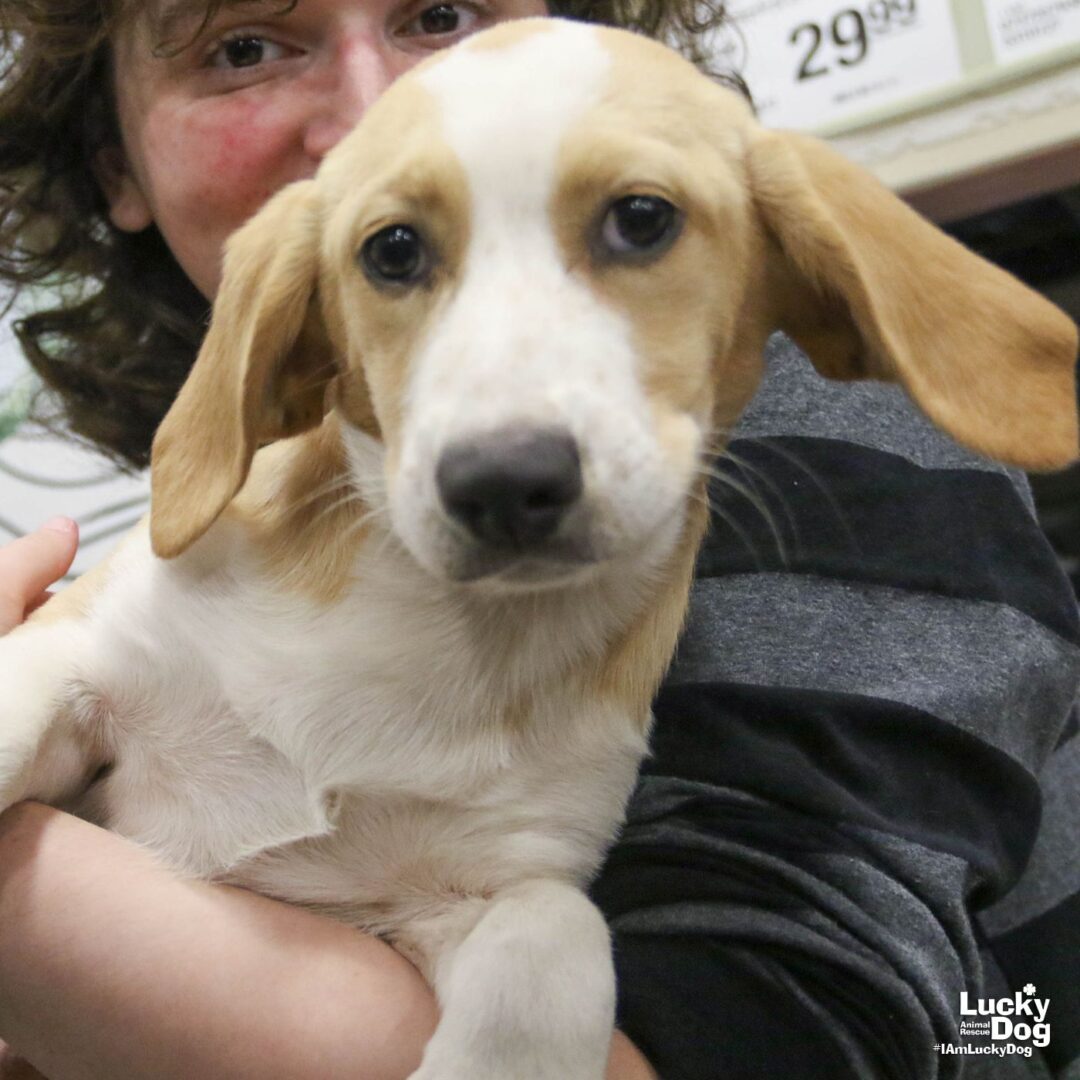 Please contact Connie Kiggins (conniek@luckydoganimalrescue.org) for more information about this pet.sweet baby girl seeking happily ever after! OLIVIA NEEDS A FOREVER HOME!!!! Come meet Olivia and other great adoptable dogs this Saturday (1/31) from 11 am -2 pm at the PetSmart in Alexandria (3351 Richmond Hwy, Alexandria, VA 22305)! Name: Olivia Best Guess for Breed: Basset hound mix Best Guess for Age: 3.5 months as of 1/8/26 SEX: Female Estimated Weight (puppies’ weights change quickly!): 13 lbs as of 1/7/26 Gets Along With: Most puppies are in the prime of their socialization window and will do well with other dogs, cats and kids so long as they receive patience and proper training. Currently Living at: DC area foster home Special Adoption Considerations: Puppies under 6 months of age need to have multiple potty breaks/exercise throughout the day. Potential adopters with a standard 8-hour workday must be willing to make arrangements to meet the needs of their puppy. Olivia is Looking For: Hi! Me and my sisters (there are four of us – Opal, Olivia, Olive, and Oakley) are satos from Puerto Rico. (Yes, that means our best guess for breed is just that – a guess – because we’re elongated with short legs!) Growing up together has been great but now we’re ready to split up and get our own human families in the DC area – we’ve talked it over and this is what we want: Play time – all those puppy zoomies! Snuggles and cuddles! World exploration! I promise to give you so many adoring gazes and kisses, and so much love and loyalty for all my days. What do you say? Do I get to grow up with you? What My Foster Says About Me: We will update this once she has spent time in foster care. Puppy Vetting Requirements: Lucky Puppies have had their age appropriate vaccines, but may not yet be “fully” vaccinated. It is the adopter’s responsibility to ensure that the remaining puppy vaccines are given at the appropriate time. Please also keep in mind that, until your puppy is fully vaccinated, they are at greater risk for illness than an adult dog. Your new puppy will need to work on their house training and will also need to go to obedience school so they can grow into a well-socialized dog! TO ADOPT: The adoption fee for this puppy is $485, which includes the cost of routine vetting and transport from the shelter. If you are interested in adopting, please complete the Adoption Questionnaire online bit.ly/adoptaluckydog Lucky Dog Animal Rescue does our best to provide accurate information about the dogs we have for adoption. That said, we cannot make any guarantees about age, breed or temperament. Thank you for contacting Lucky Dog Animal Rescue and helping to save a life! Please visit us online at www.luckydoganimalrescue.org . BE A FOSTER!!! Fosters make it possible for Lucky Dog Animal Rescue to save and care for homeless and abandoned dogs! To learn about fostering, please contact fostering@luckydoganimalrescue.org! BE A SPONSOR!!!! Sponsors help Lucky Dog support the many dogs we save. To learn more about sponsorship, please contact info@luckydoganimalrescue.org . ​