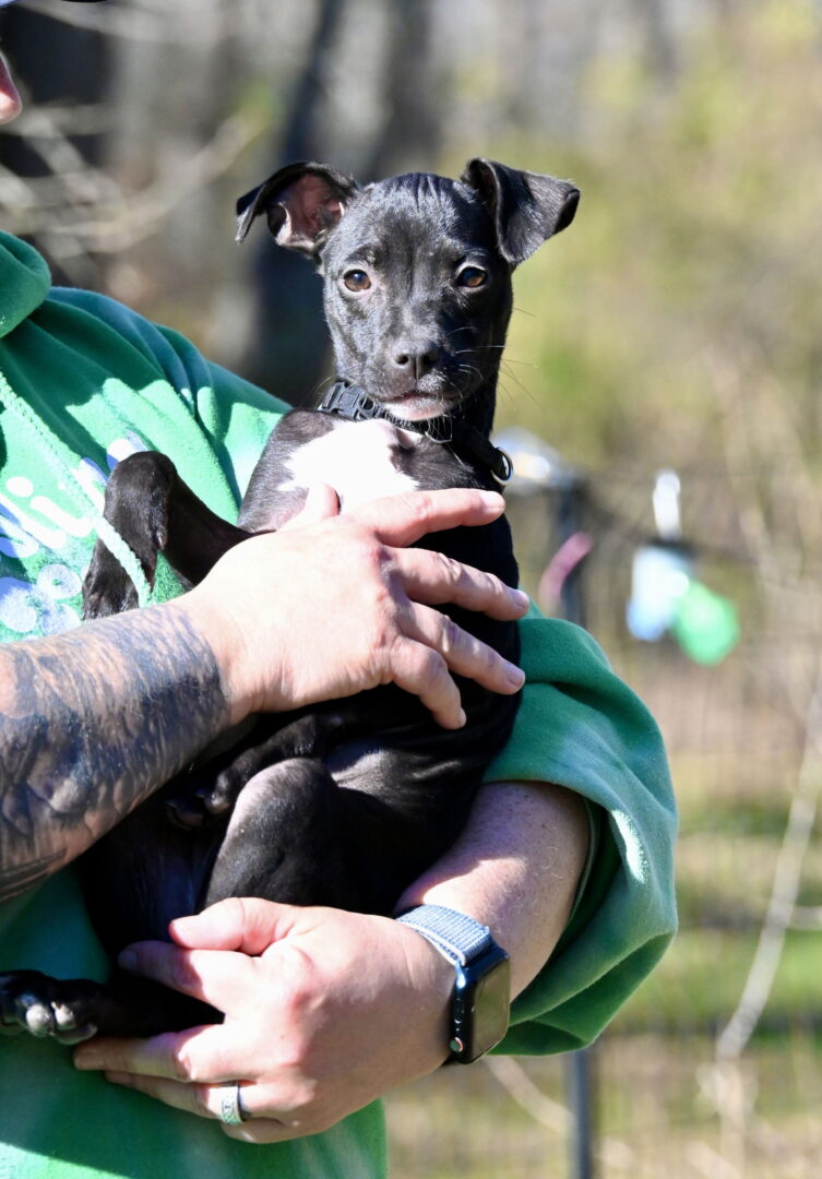 To apply to adopt this dog now, complete our adoption application HERE To see our upcoming events where you can meet some of our dogs, please see HERE Age: 3 months (as of 11/8/24) Weight: 9 lbs (as of 11/14/24) Location: CT This dog has been spayed/neutered, is up to date on shots, on heartworm preventative and is microchipped. CRIKEY, animal! Look who we got here. Just some pups in their natural habitat looking for their forever homes. Meet Olly Otter, one of the Wildlife puppies (10 puppies total, all available for adoption through SOS)! These pups are 3-month-old terrier mixes with the most adorable black and white coats. As you would expect with any puppies, these guys are playful, happy-go-lucky, and friendly to all they meet (you will very likely receive MANY kisses upon meeting these pups). These pups have many amazing traits–on top of being playful yet not yappy, they are affectionate, intelligent, even-tempered, gentle, goofy, eager to please, and mild mannered. They fill their days with many hobbies, including playing with toys, playing fetch, playgroup, and running, but they also enjoy a healthy dose of cuddling throughout the day. The Wildlife litter is hard at work on crate, house, and leash training, and they already do well crated in the car. We strongly recommend that all of our puppies attend obedience training to learn commands, develop confidence, and socialize with other dogs. Think Olly Otter would make the perfect addition to your family? Fill out an application to let her know! An adoption donation is required for each adoption; please see HERE for more information about this. To apply for this dog, fill out an adoption application on our website: Adoption Application – SOS Animal Rescue League in Rhode Island (sosarl.org) **Additional info you should know – For most of our dogs, we are only guessing at predominant breed or breed mix. We get to know each of our dogs as an individual and do our best to describe and place them based on personality not breed label. Some dogs may not yet be in New England, nor ready for immediate adoption. There may be additional vetting, quarantine, waiting periods and/or fees depending upon your state of residence. If you have questions or concerns on any of this, you can discuss this with your Adoption Counselor.