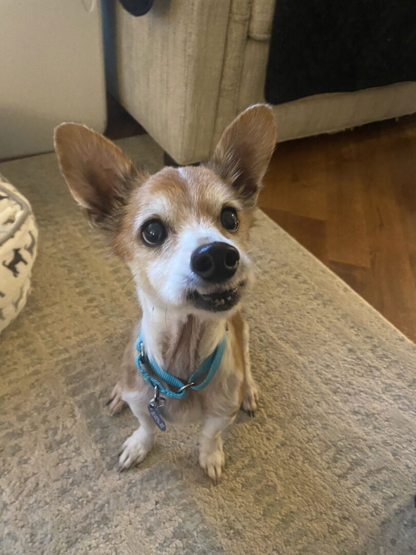 Oodle TX is a sweet old man who is close to 11 years old and weighs under 14 pounds. He is very affectionate and is quite assertive about letting you know that you need to pet him. He likes his head rubbed a lot and when I rub his back he turns around so I can scratch his butt – if I stop he will paw at me! Oodle also has a great appetite and will hang out by my feet when I'm cooking. I've never had a dog that played fetch but somehow he taught me to throw a toy for him and he is persistent about playing once he gets started! Oodle also ignores the cat in his foster home but does well with other doggie friends. While on walks he has met several neighbor dogs. When Simon was on the other side of his fence all went well but when they met each on a leash, Oodle growled so he appears to be somewhat leash reactive. If you are interested in meeting Oodle, please complete an adoption application and be sure to ask for OODLE TX! His adoption fee is $250.