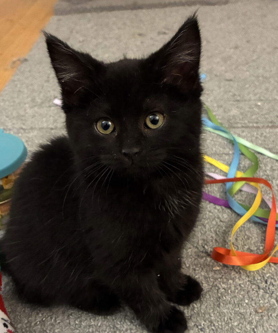 Opal is about 2.5 months old as of 12/23/2025 and is a super sweet girl! She has a loud purr that she loves to show off when you pet her or play with her. She enjoys all kinds of toys, but especially likes a ribbon teaser and a ball she can chase. Opal loved playing with other kittens at her foster home, and she’d do well in a home with another cat or kitten. Opal eats both wet and dry food and is great about using the litter box. She has done well with older children and would probably be fine with younger children as well. She has not met dogs. Opal is now playing in our Christiana PetSmart adoption center. Please stop in to meet her! Please submit our no-obligation Adoption Application for a meet and greet or to adopt: https://forgottencats.org/adoption-application/. Thank you! (Foster: Megan G.)