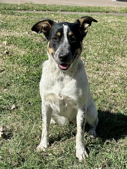 Meet Oreo!She is about 1 year od and about 44 lbs.. Aside from being absolutely cute, she is loving, playful, happy, and sweet pup. She loves playing with her sibling and play fetch. She is full of puppy energy/cuteness, loves treats, and remains the center of attention. She loves to play with the cats at her foster home but the cats aren't too interested. Lol. She plays well with people and kids. We think Oreo is a bluetick and terrier mix.She is potty and crate trained, although she has happy pee when she sees someone she loves.Oreo is located in Houston, Texas. Transport to most states available for an additional fee of $300.