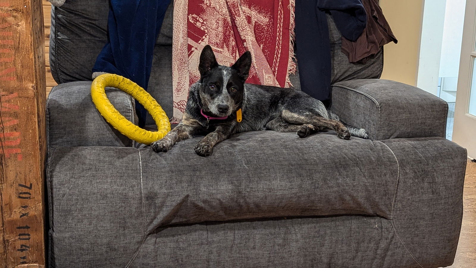 Location: MA Meet Osi – the Perfect All-Season Adventure Buddy! Osi (short for "Lilith Bear" in Spanish) is a six-month-old bundle of energy and curiosity. She’s a joyful leaf chaser, puddle jumper, snow enthusiast, and professional giver of puppy kisses. If you’re looking for a companion to explore the world with, Osi is your girl! This confident and inquisitive pup loves exploring the outdoors and has excellent recall—she’ll never go far without keeping an eye on you. Osi enjoys tugging on toys, chasing balls, and exploring new places. While she hasn’t mastered retrieving yet, she’s always eager to come back to her people for play time, cuddles and snuggles. Why You’ll Love Osi: Social Butterfly: Osi has met people of all shapes and sizes in different settings and has been social, confident, and resilient in new situations. Playful and Energetic: She loves running with other dogs and plays nicely with her foster sister, although she still has some puppy nipping tendencies that are improving with consistent guidance. She’ll also make a great running buddy. Smart and Trainable: Osi already knows basic commands like sit, down, wait, and drop, but she’ll need ongoing reinforcement as she grows. Like any Australian Cattle Dog mix, she’s intelligent, determined, and always up for a challenge. Adventurous Spirit: She’s athletic, fast, and ready for outdoor adventures. Osi loves car rides, chews on toys to entertain herself, and is crate-trained—she even puts herself to bed when she’s tired! Quiet with Outdoor Life: Osi enjoys people-watching more than barking at mail carriers or passersby. She will bark when excited, especially when she’s asking for love or seeing others pets get attention. Household Details: Potty Trained: She’ll let you know with her adorable expressions when it’s time to go outside. Dog-Friendly: She’s great with other dogs and loves a good romp. Cat-Friendly: She’s curious about her foster home’s cat and invites play, although the cat isn’t as interested. Needs Training Around Cars: Osi can be nervous around passing cars and may lunge, but with positive reinforcement, this is an easy fix. Not Ideal for Homes with Small Kids (Yet): Osi is still working on puppy behaviors like ankle-nipping and supply biting when she gets excited. While these are improving with training, a home without small children is best for now. Health and Adoption Information: Osi is spayed, up-to-date on vaccinations, and on heartworm, tick, and flea prevention. We’re looking for adopters preferible in or near the Boston area so you can meet Osi in person and let her steal your heart! If you’re ready to welcome an intelligent, affectionate, and adventurous pup into your life and are excited about spending time training and exploring together, Osi is the perfect match for you. Please contact: cata.lopezospina@gmail.com Complete an Application: https://www.acdra.org/adoption-application
