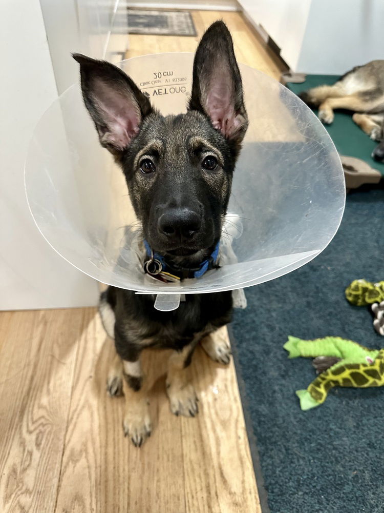 Otte was neutered this week and will wear his Elizabethan collar until we're sure he'll leave his stitches alone. He's back in his foster home, ready to rock and roll since pups his age just don't have any concept of downtime. But he's got great toys to entertain him in his crate while he heals.Otte is a three-and-a-half to four-month-old sable shepherd puppy bursting with energy and charm! This sweet boy loves people and gets along beautifully with other dogs, including the senior shepherd in his foster home. Otte lives the dream on three acres, where he gets to romp and explore after spending the day at the office, charming everyone he meets. Otte gets to head to the office with his foster mom, where he's a star attraction, always ready for love and belly rubs. He was a favorite at the vet office, where he got a great checkup, cuddled on laps, and kissed the vet staff while getting his vaccines. Otte's winning personality and adorable antics are hard to resist. He's been having adventures in his very shepherd-experienced foster home, where he's learning all about chickens, horses, and all the other critters, in addition to good household manners and potty and crate training. Otte is a brave little guy who walks over things, through things, and all kinds of surfaces without a pause, sniffing to his heart's content. At first, Otte thought a leash on him was like lava, but he's easily mastered being on a leash, sitting, down, leaving it, coming, and other great manners, including that "ack" sound when humans can't get the words out to say stop it. Otte is spending this past week at another one of our fosters while his original family has vacation plans. Following the two resident dogs, Otte immediately mastered the doggie door in this new foster home. He's met the two resident cats and realized they have rules, too. He's already sharing toys with the dogs and having a blast. He thought the carrot he got for a treat was yummy; it might have been his first carrot. And he sleeps through the night in his crate, slumbering away for about seven hours. He's been walking 2-3 miles daily, mastering good leash manners, hanging out at the park, and easily spending time on all the fun kid's playground equipment. Otte's littermate, Amelia, nicknamed Millie, is in her own shepherd-experienced foster home, living with an adult shepherd. We're so happy that she's thriving, too. Millie is getting spayed this week, too. We ask adopters interested in Otte to have experience with shepherds or similar herding or working breeds and the time and resources to commit to lots of love, structure, environmental exposure, and training.As a foster-based rescue, ShepHeroes is always in need of fosters. An overwhelming number of shepherds in our local shelters need our help for a fresh start. Would you be willing to share your home and part of your summer to help shepherds find new families? You provide the love, and we'll provide everything else! Saying "yes" today truly saves a life. Complete this https://www.shepheroes.org/foster-form, and we'll be in touch ASAP! We appreciate your consideration.