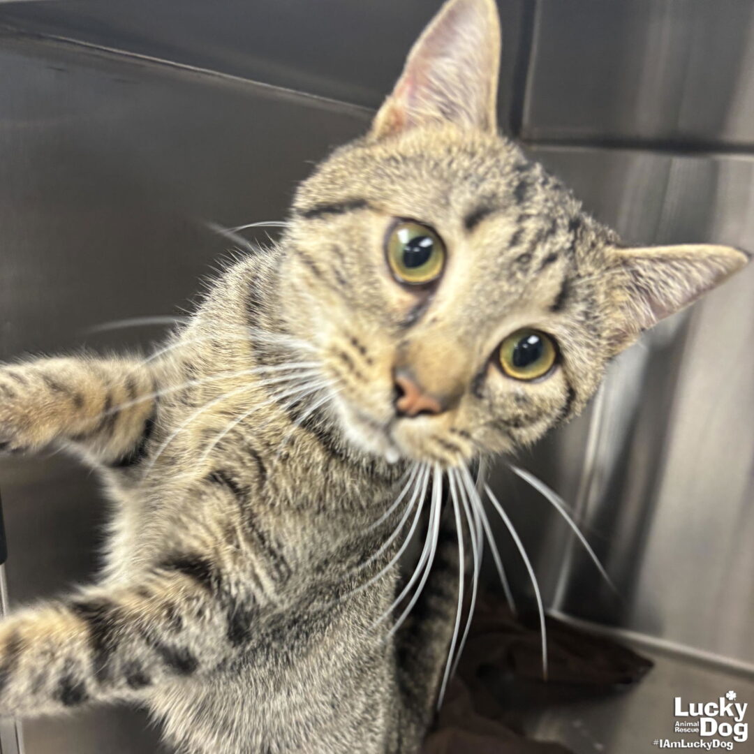 Please contact Lauren McCarty (laurenmc@luckydoganimalrescue.org) for more information about this pet.Sweet Ozzy is looking for a forever home!OZZY NEEDS A FOREVER HOME! Name: Ozzy Best Guess for Breed: Domestic Short Hair Age: 10 mnths old as of 1/12/25 – Estimated DOB: 3/12/24 SEX: Female Approximate Weight: 6lbs 11 oz Coloring: Brown tabby Type of Hair: Short Lived with: Ozzy and Fig Gets Along With: Because of her young age, Ozzy will likely get along with other cats, dogs and kids with an acclimation period. We’re happy to help with tips and tricks! I live with a dog in foster! Currently Living at: Shelter…coming to DC area soon I am Looking For: My loving forever family! Hi! I’m Ozzy, and I am a cute little kitten! I won’t ask for much- just some love, cuddles and lots of toys so I can run and play and be my kitten self. What My Foster Says About Me: coming soon! Kitten Vetting Requirements: Your kitten may not be fully vaccinated upon adoption. You will be responsible for providing whatever remaining vaccines are needed to complete the kitten vaccine series. TO ADOPT: The adoption fee for adult cats is $200 ($350 for two cats adopted together). The adoption fee for a kitten (under 7 months old) is $220 ($380 for two kittens adopted together).If you are interested in adopting, please complete the Adoption Questionnaire online at bit.ly/adoptaluckycat. Lucky Dog Animal Rescue does our best to provide accurate information about the cats we have for adoption. That said, we cannot make any guarantees about age, breed or temperament. Thank you for contacting Lucky Dog Animal Rescue and helping to save a life! Please visit us online at www.luckydoganimalrescue.org . BE A FOSTER!!! Fosters make it possible for Lucky Dog Animal Rescue to save and care for homeless and abandoned dogs! To learn about fostering, please contact fostering@luckydoganimalrescue.org BE A SPONSOR!!!! Sponsors help Lucky Dog support the many dogs we save. To learn more about sponsorship, please contact info@luckydoganimalrescue.org !