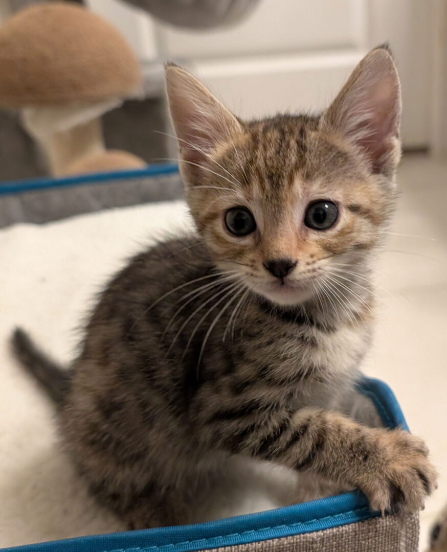 See Paisley 10.15.24’s HomepageGo to our official websiteYou can fill out an adoption application online on our official website.Because of the difficulty getting appointments to get our rescue cats altered in a timely manner, we recently launched our pre-spay/neuter adoption program. The cat you are interested in may be part of this program and will have at least it’s first FVRCP vaccine, a microchip registered to us and will have been treated for internal and external parasites. Please fill out our screening form and after reviewing and confirming your information, our adoption counselor will reach out to you to explain the process. Hello there! I'm Paisley, your future fur-ball of fun! I'm a kitten with a spirit that's always ready for a new adventure. I love exploring every nook and cranny, finding joy in the smallest of things. I've been told I'm quite the character, with my goofy antics and playful energy. I can turn anything into a toy, and every moment into playtime. My curiosity knows no bounds, and I'll always be there to brighten up your day with my friendly purrs. Adopting me means endless laughter, boundless love, and a friend who's always ready to play. I can't wait to meet you!