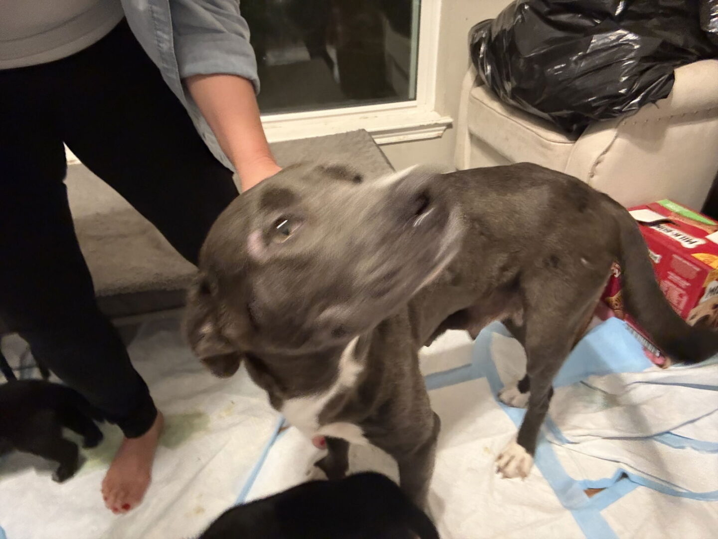 Millie (aka Pam) is a gentle, affectionate soul with a perfect balance of playfulness and calm. She loves to play and snuggle, but once playtime is over, she settles easily without pestering. She’s wonderfully gentle with our 3-lb teacup Yorkie and happily plays tug-of-war with our Border Collie, showing just how well she adapts to dogs of all sizes. Millie does great off leash and enjoys exploring the woods behind our home, always coming right back the moment she’s called. She can be a little cautious when meeting new people, but once she forms a bond, she loves deeply and wholeheartedly. She is fully potty trained, walks beautifully on a leash with no pulling, and would make a truly devoted companion. Millie deserves a second chance at life with a loving family. If we didn’t already have three dogs, we would absolutely keep her—but fostering allows us to continue helping dogs like Millie find the homes they deserve.