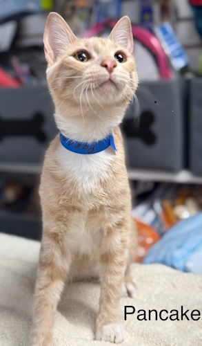 Pancake is an adorable orange tabby male 6 months old (as of mid February). YOU CAN MEET HIM AT OUR CENTER AT 571 NE44th St. (NW corner of Prospect (44 th and 6 th ) in Oakland Park, FL. We encourage you to file an on line application for this or any of our pets by clicking HERE or by going to www.animal-aid.com for a Pet Adoption Application . Please include the name of the cat(s) or kitten(s). Stop by anytime when we're open. Please visit our web site at www.animal-aid.com to see the hours for our Adoption Center located at 571 NE44th St. (NW corner of Prospect (44 th and 6 th ) in Oakland Park, FL 33334 and our pets available for adoption. Many of our cats are shown 7 days a week at the Petsmart at 12051 Sunrise in Plantation. The donation we are requesting is $95 and includes our medical program; all vaccines, rabies vaccine, fecal exam, de-worming, blood test for AIDS and Leukemia, spay or neuter, first month Advantage (flea treatment) plus a coupon for Science Diet food.