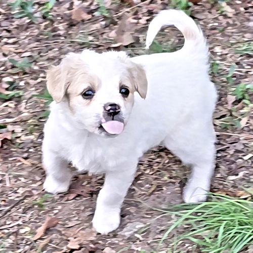 Panda is a female white-and tan border collie/lab/bulldog mix, born on February 13, 2026. Panda is playful and loving, all white except for her tan ears and tan patches around her eyes. She is an irresistible little girl! Panda had her first vaccine and deworming on April 2. She will be due her second vaccine on April 22. Panda can be adopted locally right away, but she cannot travel out of state until April 24, after her second vaccine. She can be pre-adopted, but adopters will have to wait for her. The adoption fee is $325. This covers the cost of spay/neuter, DHPP, Rabies, Flea, tick, heart worm check, worm treatment, and microchip. To adopt, you need to first fill out an application. Go to: https://rutherfordcountyhumanesociety.org/dog-adoption-application/ We are located in Western North Carolina. Optional transport is weekly. After your application is approved, we will contact you regarding cost and delivery if you so desire.