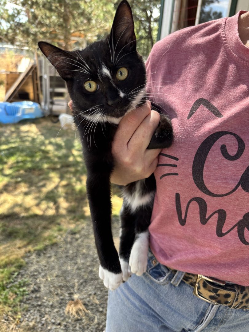 See Pandora’s HomepageGo to our official websiteOpen up a box of cute with Pandora! This little girl is as charming as she is shy. With her soft features and an adorable white stripe down her nose, Pandora has a gentle presence that quietly wins hearts. She's a sweet kitten who values her alone time and moves at her own pace. She’s gentle, sweet, and loves being near her people (even if she’s not on them). She gets along well with her mom, Athena, and her siblings (Hercules, Hades, and Thaddeus). Any of them would make a great adoption pair. Pandora would do best in a patient, understanding home that can give her the space she needs to blossom.