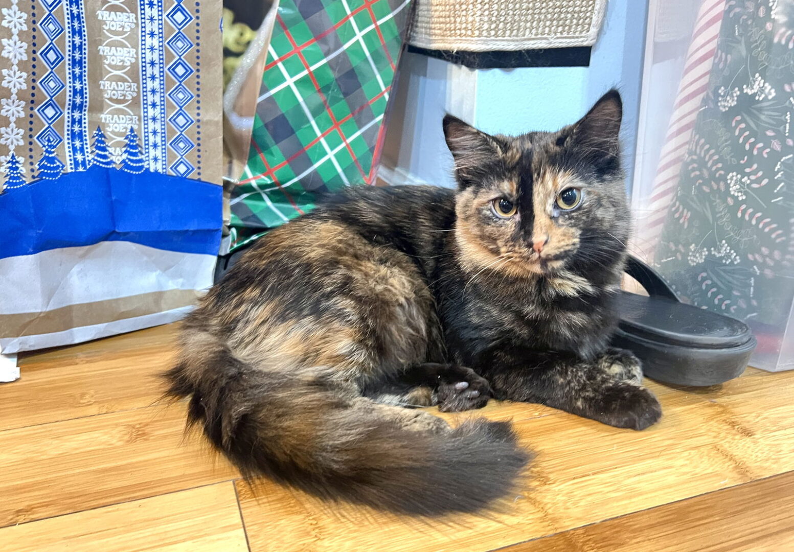 See Pansy’s HomepageGo to our official websiteYou can fill out an adoption application online on our official website.Estimated Date of Birth: 7/28/24This sweet flower is Pansy, a medium-haired tortoiseshell kitten given birth to by Callisto on 07/28/2024 . She may act shy, but she can be as playful as a kitten can be around her siblings. While she may get along with other cats, this little girl definitely has some tortitude! She will prefer to observe her surroundings first, and may initially run away, but once she gets more comfortable or gets picked up, she is all about the pets and cuddles. Or perhaps, being carried around the home like the princess that she is!While she’ll be great in a home with another kitten/cat that she can use to build her observations & play with, and maybe small dogs that’ll respect her space. Due to her reserved demeanor, she would probably do best in a calmer home.Humans must be aware of the sass that comes with most tortoiseshell patterned kitties, as this one, has shown signs of having it! Her tortitude comes with soft fur, fluffy tail in progress, a working purr motor, and that sweet, budding sassy personality!Siblings: Milkweed, Snapdragon, Lilac, and Sea Lavender. Mom is Callisto.Adoption fee: $150. Adoption fee for two kitties: $225Pansy is spayed, microchipped, is up to date with age appropriate vaccinations, and has tested negative for FIV/Feline Leukemia.