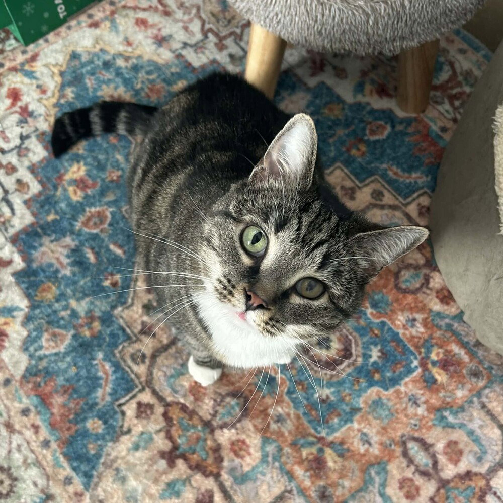 Paris is a sweet and quirky kitty who didn't have the best beginnings of life. If you approach too quickly, she might hiss, but she doesn't mean anything by it, you just started her. Once you pet her, she can't get enough loving. She has a bit of a cloudy eye from an old scratch or infection that never fully healed and doesn't seem to have the best vision…maybe a bit cloudy. She has a bit of a head tilt, likely from an old ear infection that went untreated for too long before she had a caregiver/owner. She has her tongue hanging out from time to time. She also has flare ups of the sniffles, most likely from the feline herpes virus so keeping her immune system strong will be important for her new owner. We recently took in Charlie, Fancy, Fiona, Paris, Mama Ember and Lovie from another rescue org. Sadly, the organization's beloved founder passed away a few months ago and left behind her beloved cats. These kitties are rather shell-shocked right now, but all are sweet and friendly. Our intention now is to find them amazing homes to honor her legacy of dedication to saving cats in Western North Carolina. These kitties have been INDOOR ONLY and we would like to honor that preference for their beloved owner. All cats are spayed/neutered, up to date on age-appropriate vaccines, FELV/FIV tested, microchipped, dewormed and started on monthly flea preventative. Meet Paris by applying to adopt to schedule a meet and greet. All Mountain Pet Rescue (Asheville) animals are up-to-date on vaccinations, spayed/neutered and micro-chipped before adoption. Contact the foster parent or Mountain Pet Rescue at pets@mpravl.org for more information. Please note that visual breed identification of companion animals has been proven to be unreliable, so for most of our animals we provide a best guess at predominant breed or breed mix. We get to know each of our animals as an individual and do our best to describe and place pets based on personality not breed label. Mountain Pet Rescue is a 501(c)(3) non-profit tax deductible charity (EIN 82-3039637) located in Asheville, NC.