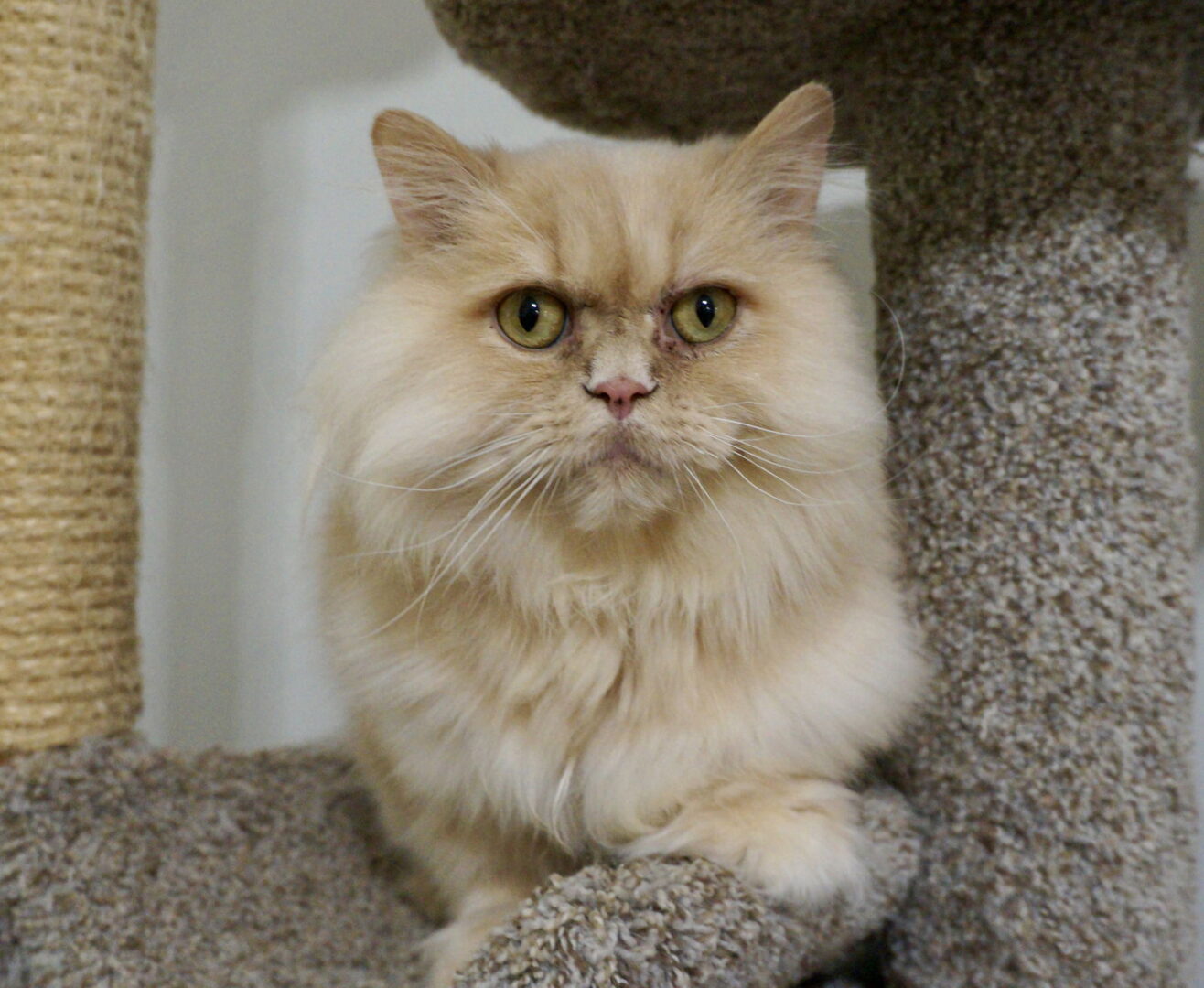 See Pascal’s HomepageGo to our official websitePascal is a 2-year-old Persian mix with the sweetest heart and the fluffiest fur. This gentle boy was surrendered when food allergies caused painful skin issues his previous family couldn’t manage. At his worst, Pascal scratched so much he lost his whiskers and had to wear a cone for months. With the right care, he’s now recovered and thriving. Pascal will likely need to stay on prescription food and daily allergy medication for life, but in return, he’ll give you endless love. He’s a lap cat through and through—happiest when curled up beside you, soaking up all the pets you have to give. At night, he likes to jump on the bed and settle in for a cozy sleep near his people. Playful as well as cuddly, Pascal enjoys chasing the laser pointer and feather toys. He also gets along well with other cats, making him a wonderful addition to a multi-cat home.
