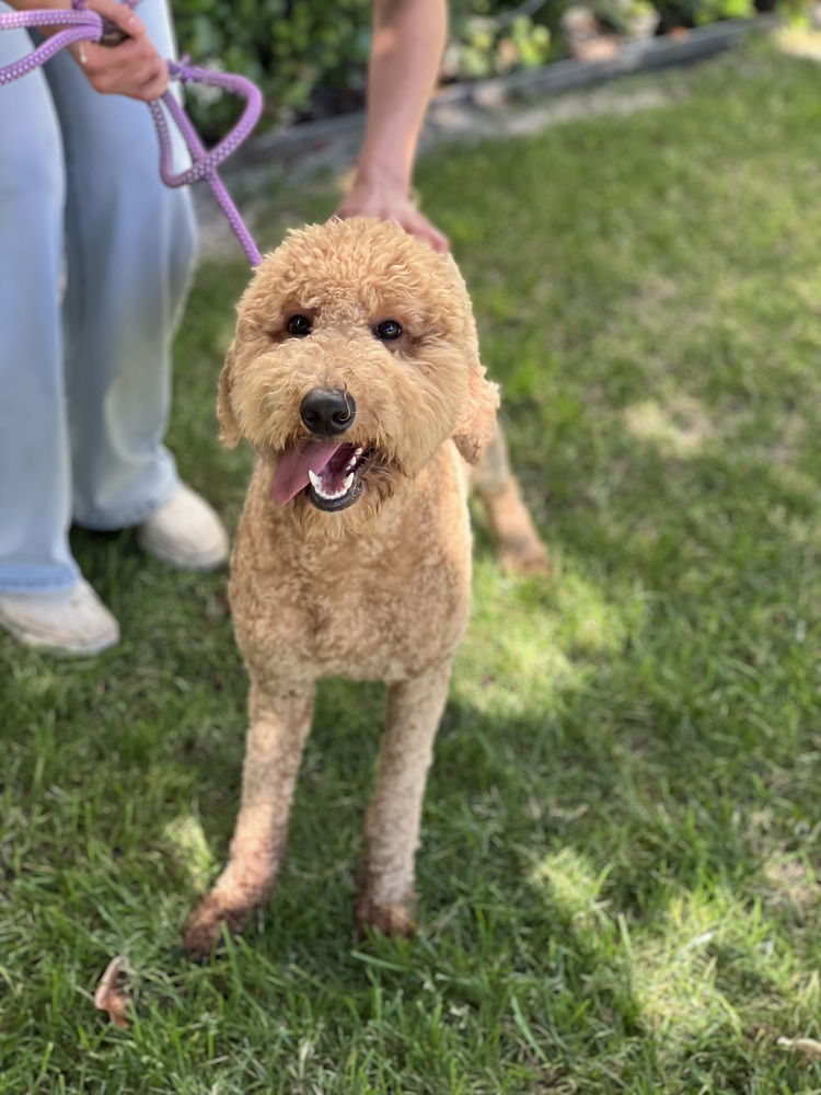 Peaches is an 8-month-old purebred Goldendoodle with a heart as sweet as her name. This beautiful girl is crate trained, potty trained, and already has such lovely house manners for such a young pup. She absolutely adores kids and thrives around other dogs — she’s happiest when she’s part of the action and surrounded by her people. Peaches has that classic Goldendoodle blend of intelligence and affection, always eager to learn and ready to snuggle after a day of fun. She’s still a puppy at heart — spunky, joyful, and full of life — but she settles nicely and loves having a cozy place to relax. Peaches is ready to grow up with a forever family who will continue guiding her and loving her the way she deserves.Peaches' adoption fee is $1000Interested in adopting this pet? Please contact us at questions@awishforanimals.org for more info.