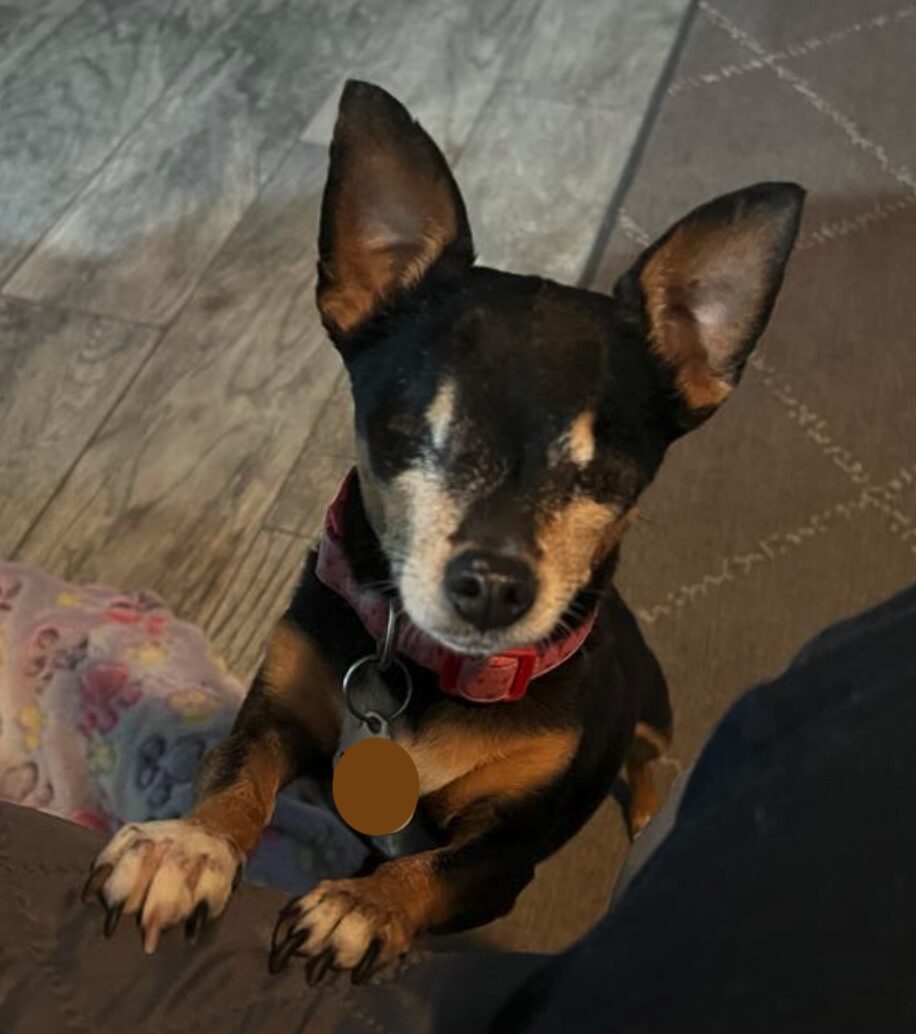 Apply to Adopt Me! Meet 6 lb, 6-7 yo Peanut, a sassy, independent, adventurous Chihuahua who likes to have it her way. Her attitude has improved after surgery to remove her painful eyes, but she will still need patience and time to trust in her new home because first meets with strangers are difficult for her and she will be reactive. She just needs someone to give her the chance to get to know them, and know that they won't hurt her. She will then give you her heart. She is house broken, crate trained and sleeps through the night in her bed. Peanut tested positive for heart worm in September, but has been on a protocol since then, so we’re hoping she will be given the all clear soon. She mostly ignores other dogs unless confronted with an in-your-face type dog, will voice her dislikes, but gives a warning bark to unfamiliar voices or noises. If you are on the look out for a watch dog, she’s your gal. Her hearing is excellent. Peanut is a good car rider. She navigates well inside the house to her beds, crate, the kitchen for treats, the water bowl, and will put herself to bed. Her most favorite place is outdoors exploring, sniffing, listening to sounds and protests if her peace is disturbed; a fenced yard would allow her to roam freely and is required for her. She will also tolerate being on a leash. Our girl is food aggressive as a result of being found dumped, starving and alone on a country road, severely underweight at just 3 lbs. Her foster mom puts her food down and walks away, giving her space. Peanut seems to prefer females, but just may warm up to a special guy who is well versed in Chi and their idiosyncrasies. While not a cuddler, she will approach for attention, a neck rub and, perhaps to join you on the couch under strict supervision because she will walk right off the edge if not stopped. Peanut may be best in a home as an only dog, would be okay with cats, but not with small children. We are adopting her to an all-adult home only. Peanut is heart worm positive at this time, and is on the slow kill method, which we can explain that process to any interested applicant. She can enjoy regular activities. Heart worm disease is contracted from an infected mosquito and can not be transmitted to another dog. If you think you have the perfect forever home for Peanut and her little quirks due to her sight limitations, please complete her app and tell us more about you.
