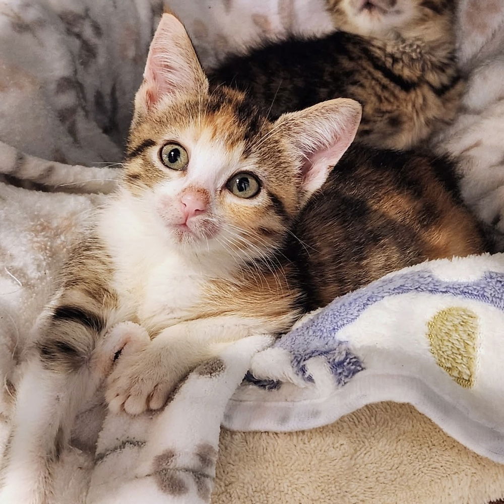 Meet Pebbles — A Petite, Wobbly, Wonder With a Whole Lot of Heart Pebbles is an adorable, spunky calico girl with a personality as sweet as her tiny face. She’s known for “talking a big game,” especially when it comes to bath time or being picked up, but underneath that sass is a total sweetheart who loves kisses, affection, and curling up near her people when she’s ready for cuddles. Pebbles is a messy little eater—adorably so—which sometimes earns her a gentle bath, and she’s never shy about voicing her thoughts on the matter!Pebbles has Cerebellar Cypoplasia (CH), often called “wobbly cat syndrome.” This non-progressive, non-contagious neurological condition simply means her coordination is a bit off, giving her the charming, slightly tipsy wobble of a “drunken sailor.” Her CH won’t stop her from living a long, healthy, joy-filled life—it just means her adopter needs to provide a safe, supportive environment. She’ll do best in a home with plenty of rugs or soft surfaces to hold on to for balance, elevated food and water bowls, and a low-entry litter box. Stairs (especially open ones) can be risky for wobbly cats, so a home without stairs (or one with baby gates to block access) is ideal. She will always be wobbly, but her condition does not progress with age, so it will never get worse, and she’ll grow more confident managing her movements as she matures.This petite sweetheart loves eating, napping, and playing with her siblings Bamm and Barnie. Because she is still very young, Pebbles needs a home with at least one other kitty friend—and she would be thrilled to be adopted with one or both of her brothers. Their wobbly wrestling matches are absolutely hilarious, and she adores having feline companions to keep her company. Pebbles has also met a small dog and lots of visitors in her foster home, and she does well with all. She is easy-going and social! She will thrive in a home with gentle, understanding humans who embrace her condition and celebrate her for the special girl she is.Pebbles may be a bit more reserved than her boisterous brothers, but she is incredibly affectionate, gentle-natured, and full of calming magic. Her foster mom says holding Pebbles can melt away an entire day’s worth of stress. She’s a uniquely lovable kitten who brings sweetness, resilience, and joy into every room she wobbles into—and she’s ready to share that magic with a family who will cherish her for the special girl she is.WE DO NOT HAVE A PHYSICAL LOCATION AS WE ARE A FOSTER-BASED ORGANIZATION. PLEASE SUBMIT AN APPLICATION TO BE IMMEDIATELY CONNECTED TO A SCREENER.Apply at online application (catsfff.org/adopt)View all of our adoptable cats here (catsfff.org/cats)Our adoption fees are listed here (catsfff.org/adoption-fees)
