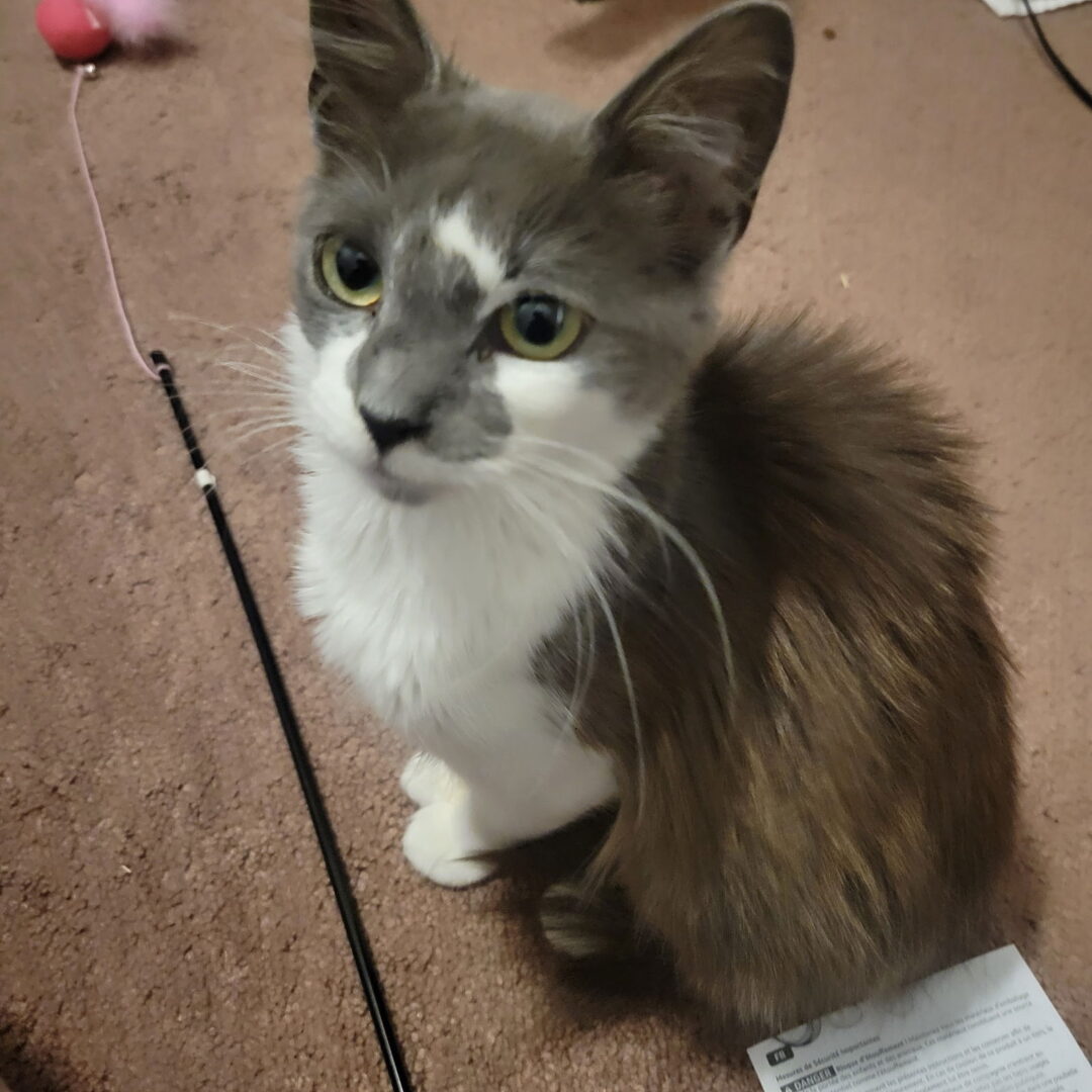 Please meet pretty Peggy Sue! She is a very sweet, loving girl who loves spending time with her human. She has not been exposed to other kitties yet and is working on litter box manners. At first, she will be hesitant towards new people but warms up quickly. She loves neck scratches and will rub against you endlessly purring away until you give her the attention she desires or she trips you! Peggy Sue is playing with her new foster famliy. Please submit our no-obligation Adoption Application for a meet and greet or to adopt: https://forgottencats.org/adoption-application/. Thank you! (Foster: Donna L.)