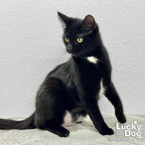 Please contact Lauren McCarty (laurenmc@luckydoganimalrescue.org) for more information about this pet.Sweet kitty needs a forever home!PENELOPE KITTY NEEDS A FOREVER HOME! COME MEET PENELOPE KITTY AND OTHER GREAT ADOPTABLE CATS ON SUNDAY 3/1 FROM 12PM-3PM AT THE PETSMART IN POTOMAC YARDS (3351 RICHMOND HIGHWAY, ALEXANDRIA, VA)! Name: Penelope Kitty Best Guess for Breed: Domestic Short Hair Age: 7.5 months as of 2/28/26 Est. DOB: 7/8/25 SEX: Spayed Female Weight: 7.98 lbs as of 2/17/26 Coloring: Black and White Type of Hair: ShortGets Along With: Penelope Kitty will likely get along with other cats, dogs and kids with an acclimation period. We’re happy to help with tips and tricks! Currently Living at: Foster in the DC area I am Looking For: My loving forever family! Hi! I’m Penelope Kitty, and I am a cute kitty! I won’t ask for much- just some love, cuddles and lots of toys so I can run and play and be myself. What the Shelter Says About Me: Penelope Kitty is a sleek black beauty that is just over the top energetic – and ready for some real play! She is doing well in our rescue’s Cat Playroom, keeping the crowd going day and night with tussles and runs, and wrestline with a kitten her age…but Penelope knows when it’s time to nap. Penelope would do best in a home with active, cat-savvy adults who will provide her with stimulation and activity. Playing with Penelope with interactive toys is recommended because she can become ‘bored’ easily. Penelope is never aggressive but she is a kitten and can excessively ‘nip’ and/or grab her human when she wants to play and can’t find any other feline willing to wrestle. When she is bored, humans become her play-thing. (Her enthusiastic play was not appropriate for children – or some adults – but she is growing out of it.) After the energetic spurt is over, she curls up for long warm naps with the kitty buddy of her choice. Penelope is a fun, happy & engaging kitten who would thrive in her own space and an understanding family. What my Foster Says About Me: Coming soon! Kitten Vetting Requirements: Your kitten may not be fully vaccinated upon adoption. You will be responsible for providing whatever remaining vaccines are needed to complete the kitten vaccine series. TO ADOPT: The adoption fee for adult cats is $200 ($350 for two cats adopted together). The adoption fee for a kitten (under 7 months old) is $220 ($380 for two kittens adopted together).If you are interested in adopting, please complete the Adoption Questionnaire online at bit.ly/adoptaluckycat. Lucky Dog Animal Rescue does our best to provide accurate information about the cats we have for adoption. That said, we cannot make any guarantees about age, breed or temperament. Thank you for contacting Lucky Dog Animal Rescue and helping to save a life! Please visit us online at www.luckydoganimalrescue.org . BE A FOSTER!!! Fosters make it possible for Lucky Dog Animal Rescue to save and care for homeless and abandoned dogs! To learn about fostering, please contact fostering@luckydoganimalrescue.org BE A SPONSOR!!!! Sponsors help Lucky Dog support the many dogs we save. To learn more about sponsorship, please contact info@luckydoganimalrescue.org !