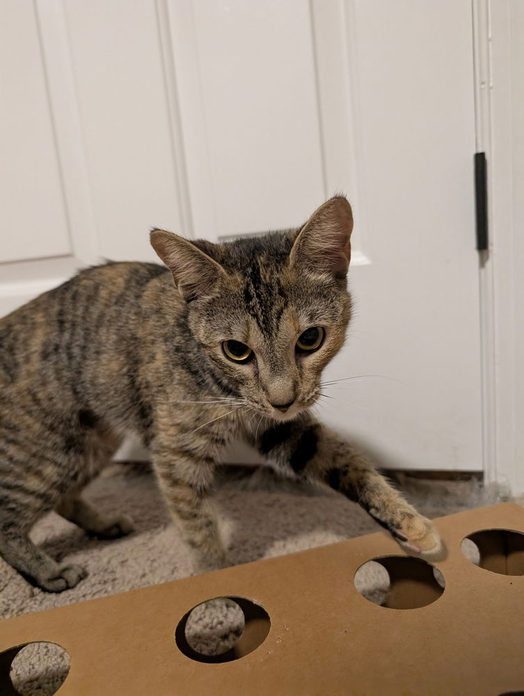 Penne is a shy girl who just wants to be loved. Usually her sister, Ravioli, is the star of the show. Once Ravioli has had her fill of head scratches, Penne is at the ready for her turn. Her favorite things are chasing Ravioli and finding the most obscure, difficult to get to hiding places. She'll come out for some affection and food, but don't be surprised if you can't find her while she's napping in a hidey hole.Put in an application for Penne today!https://care-cats.org/adoption-process/
