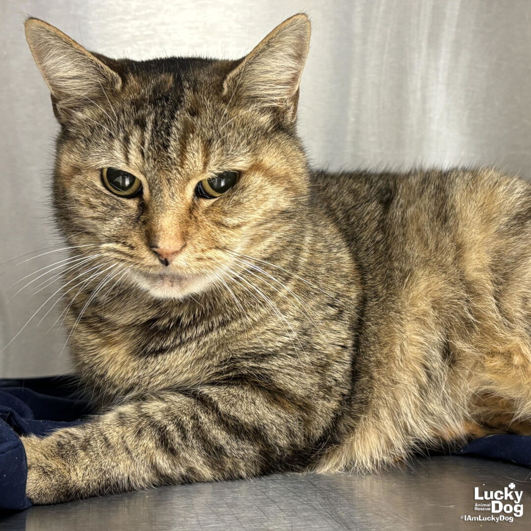 Please contact Lindsey Cope (lindseyc@luckydoganimalrescue.org) for more information about this pet.Pretty girl in search of her forever home!PENNY NEEDS A FOREVER HOME! Name: Penny Best Guess for Breed: Domestic Short Hair Age: 2 years Estimated DOB: 1/15/2024 SEX: Female Approximate Weight: 10lbs Coloring: Brown tabby Type of Hair: Short Gets Along With: With proper integration, Penny will likely get along with other cats, dogs and kids with an acclimation period. We’re happy to help with tips and tricks! Currently Living at: Shelter – coming to the DC area soon! I am Looking For: My loving forever family! Hi! I’m Penny, and I am a pretty girl! I won’t ask for much- just some love, cuddles and lots of toys so I can run and play and be myself. What My Foster Says About Me: Coming soon! TO ADOPT: The adoption fee for adult cats is $200 ($350 for two cats adopted together). The adoption fee for a kitten (under 7 months old) is $220 ($380 for two kittens adopted together).If you are interested in adopting, please complete the Adoption Questionnaire online at bit.ly/adoptaluckycat. Lucky Dog Animal Rescue does our best to provide accurate information about the cats we have for adoption. That said, we cannot make any guarantees about age, breed or temperament. Thank you for contacting Lucky Dog Animal Rescue and helping to save a life! Please visit us online at www.luckydoganimalrescue.org . BE A FOSTER!!! Fosters make it possible for Lucky Dog Animal Rescue to save and care for homeless and abandoned dogs! To learn about fostering, please contact fostering@luckydoganimalrescue.org BE A SPONSOR!!!! Sponsors help Lucky Dog support the many dogs we save. To learn more about sponsorship, please contact info@luckydoganimalrescue.org !