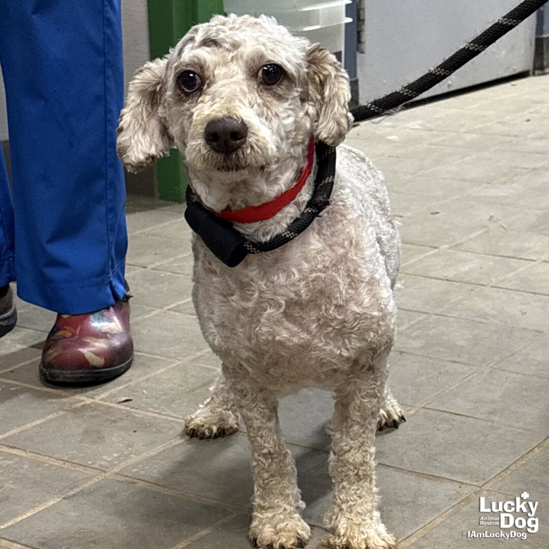 sweet boy SO fresh start and love! PENNYWISE NEEDS A FOSTER OR FOREVER HOME!!!! Name: Pennywise Best Guess for Breed: Poodle mix Best Guess for Age: 5 years as of April 2026 SEX: Male Approximate Weight: 19 lbs Gets Along With: Other dogs! We haven’t seen him with cats or kids but we are happy to discuss integration techniques with any potential adopters! Currently Living at: Rural shelter – needs a foster or forever home in the DC area to get up here! Pennywise is Looking For: First of all, he’d like a name change. He doesn’t know why he was named after a demented clown, and he wants a new name asap. Once that’s set, he is eager to explore the world by the side of his humans. Sniffy walks, romps in parks, all the adventures they can dream up – yes, please! And then cuddles while chilling after a fun day. Quality kibble and a cushy dog bed – yes, on his wish list too. And – daily brushing and regular professional grooming too, please. He has a high maintenance coat and mats hurt! Most of all, though, he wants to know where he belongs, to be safe and loved. In exchange he promises adoring gazes and loyal companionship for all his days. What do you say? Does Pennywise have a spot on your lap and in your life? What My Foster Says About Me: We will update this once he has spent time in foster care. Lucky Dog cannot guarantee any dog is housebroken. All of our dogs are working on their crate training. TO ADOPT: The adoption fee for this dog is $460, which includes the cost of routine vetting, including vaccinations and spay/neuter. If you are interested in adopting, please complete the Adoption Questionnaire online at bit.ly/adoptaluckydog . Lucky Dog Animal Rescue does our best to provide accurate information about the dogs we have for adoption. That said, we cannot make any guarantees about age, breed or temperament. Thank you for contacting Lucky Dog Animal Rescue and helping to save a life! Please visit us online at www.luckydoganimalrescue.org . BE A FOSTER!!! Fosters make it possible for Lucky Dog Animal Rescue to save and care for homeless and abandoned dogs! To learn about fostering, please contact fostering@luckydoganimalrescue.org! BE A SPONSOR!!!! Sponsors help Lucky Dog support the many dogs we save. To learn more about sponsorship, please contact info@luckydoganimalrescue.org !