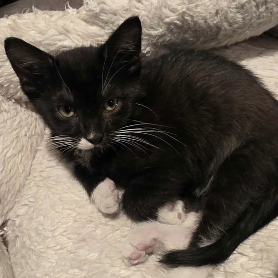 Peppermint is a delightful blend of sugar, spice, and pure kitten silliness. This striking tuxedo girl sports a cute half mustache, perfect white socks, and the most heart-melting talent of all—she politely asks to be picked up with tiny meows so she can make biscuits and purr like she’s been practicing for years.Though she started life on the streets of Chicago and may be a little shy at first, Peppermint warms up fast. Within minutes she’ll switch into either full snuggle mode or WWE kitten chaos—you never know which, but both are adorable. She’s a certified goofball who loves balls, springs, wrestling sessions with her sisters, and basically any game that lets her show off her zoomie skills.Peppermint has been socialized with kids, adults, and other cats, and she does wonderfully with everyone. With slow introductions, she would likely do well with a friendly dog, too. One thing she absolutely needs is a playful feline companion—so she would love to be adopted with one of her siblings or join a home that already has a young, active kitty to match her energy.If you’re searching for a kitten who brings both the cozy cuddles and the comedy chaos, Peppermint is your girl! WE DO NOT HAVE A PHYSICAL LOCATION AS WE ARE A FOSTER-BASED ORGANIZATION. PLEASE SUBMIT AN APPLICATION TO BE IMMEDIATELY CONNECTED TO A SCREENER.Apply at online application (catsfff.org/adopt)View all of our adoptable cats here (catsfff.org/cats)Our adoption fees are listed here (catsfff.org/adoption-fees)
