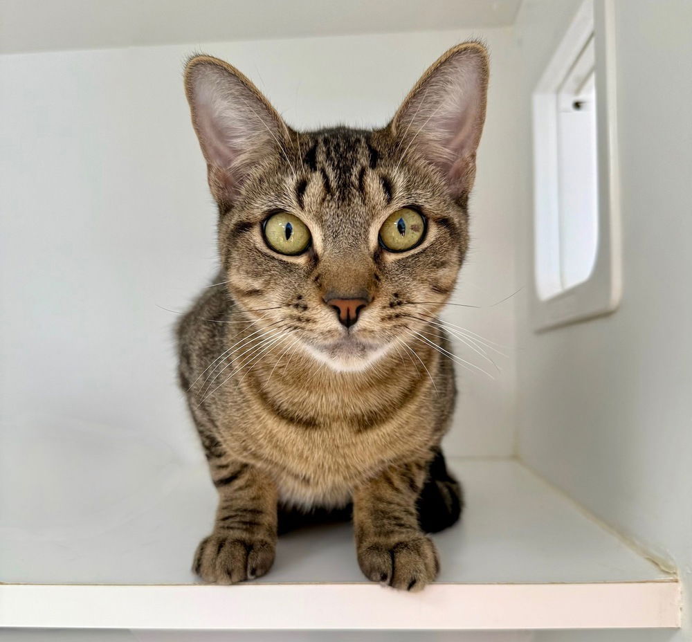Meet Peter, a sweet and playful black and brown tabby kitten with a heart full of love. His energetic personality will keep you entertained as he explores, plays, and makes friends with everyone he meets. While Peter gets along with others, he doesn't need another animal to keep him company and share in his adventures. He’s FIV/FeLV negative, up-to-date on vaccinations, flea-treated, dewormed, microchipped, and neutered. Born around August 11, 2024, Peter is ready to bring fun and affection into a loving family. Will you be the one to offer him a forever home?