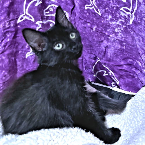 Phoenix is a female medium hair black kitten, born on June 15, 2025. She has one mission: to curl up in your lap or be held like a baby for as long as she possibly can. Phoenix will play with her kitty pals, but she is the first to curl up for human affection. She will most likely require that you share your pillow and blanket to ensure she gets all the beauty sleep she needs. Indoor cat only! The adoption fee is $75. This covers the cost of spay/neuter, PVR, Rabies, flea, tick, ear mite and worm treatment. To adopt, you need to first fill out an application. Go to: https://rutherfordcountyhumanesociety.org/cat-adoption-application/ We are located in Western North Carolina. Optional transport is weekly. After your application is approved, we will contact you regarding cost and delivery if you so desire.