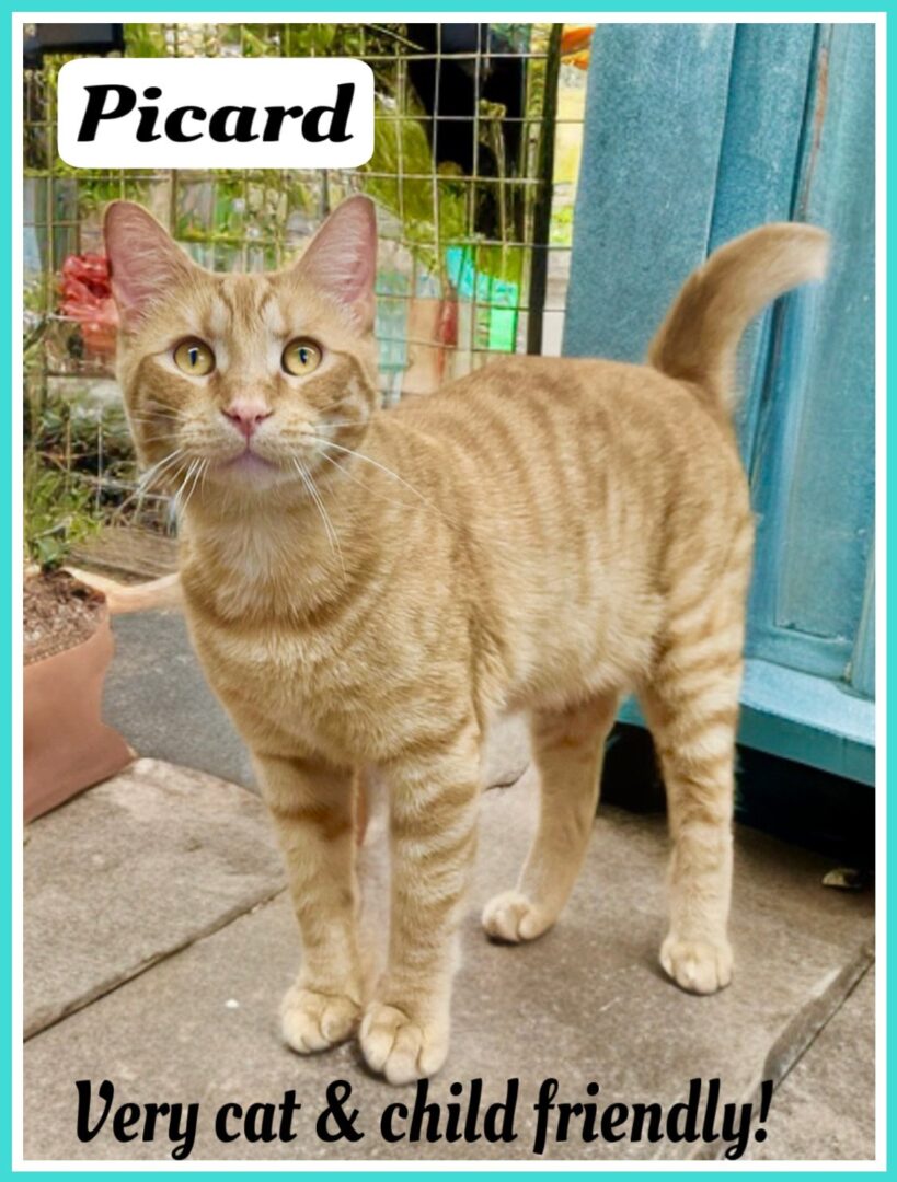 Hold me and brush me, please!! My name is Picard! I’m a handsome orange tabby guy who my caretakers think is approximately 2-3 years old. I think I heard them say they named me after a famous TV character (Star Trek, maybe) who was very smart and diplomatic. I think that could describe me too, at least a little. I like to analyze a situation before deciding if I want to participate or just sit back and watch. I’m sometimes discerning about people, but I am really a very friendly and sweet guy. I don’t mind other felines either, especially if our laid-back personalities mesh. I also just hang out by myself. I love to be pet all over, get brushed, and even be held. To show you I’m enjoying all the attention, I really like to shove my head into your face (probably a few times), make biscuits, and wag my adorably short tail! I think I’d be great in a calm household that can help me blossom! I don’t seem to mind other friendly kitties, but I haven’t met dogs. I’ve liked the older children I’ve met and since I’m gentle, I’d probably do OK with young kids, with proper introduction. https://www.youtube.com/shorts/CM3ZqNRdFYg . Picard is playing in our Jenkintown PetSmart adoption center. Please submit our no-obligation application: https://forgottencats.org/adoption-application/. Not ready to adopt? Please apply to foster: https://forgottencats.org/foster-a-cat/. Thank you! (Foster: Willow Grove)