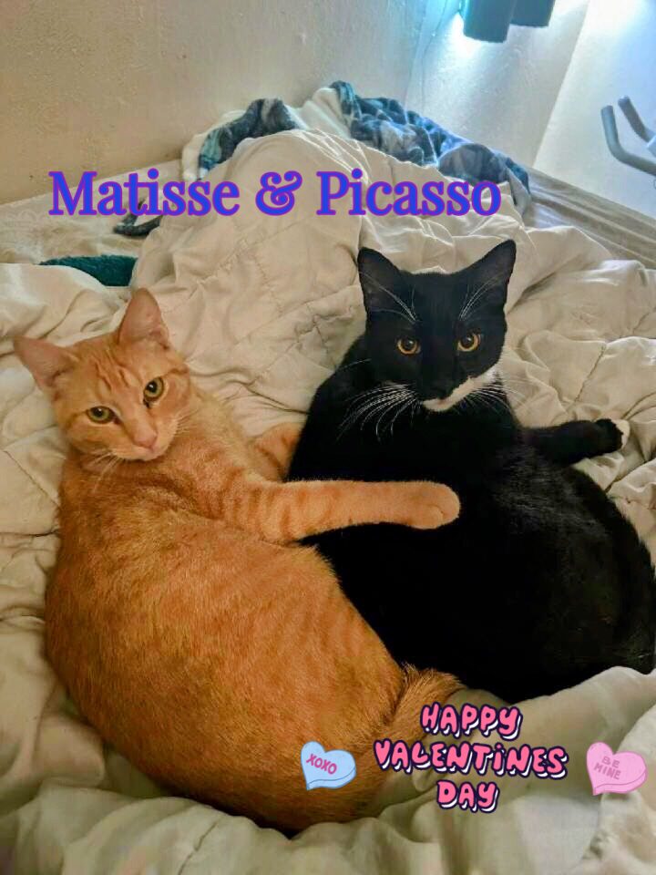 Loving bonded pair Meet Picasso & Matisse, a dynamic duo with a heartwarming bond. They were found together behind a store, their lives intertwined from the start. Forming an unbreakable bond that's evident in their everyday interactions. They're sweet, cuddly, and would make a perfect addition to any home. They love to play and explore together, their personalities complementing each other perfectly. They deserve a forever home & the chance to experience the joy of a loving family. Consider giving Picasso & Matisse a forever home where their love and friendship can continue to flourish. Picasso’s personality shines through in his gentle, sweet nature. His emotional intelligence is profound; he has an uncanny ability to sense when someone is feeling down and offers his comforting presence. Picasso loves to engage in playful activities, but he also appreciates quiet moments of affection. Matisse, the kitten with a heart full of love. Though a tad shy, he warms up quickly, revealing his playful, gentle nature. He's the type of kitten who will curl up with you on a quiet evening, purring contentedly in your arms. He's reserved yet extremely affectionate, a combination that makes him irresistibly charming. Matisse loves to play, but he loves to cuddle even more. Picasso birthdate – 4/2024 Matisse birthdate – 5/2024 If interested in meeting Picasso & Matisse call or text Amber at 925-852-3405 or text their sponsor Venus at 925-222-7645