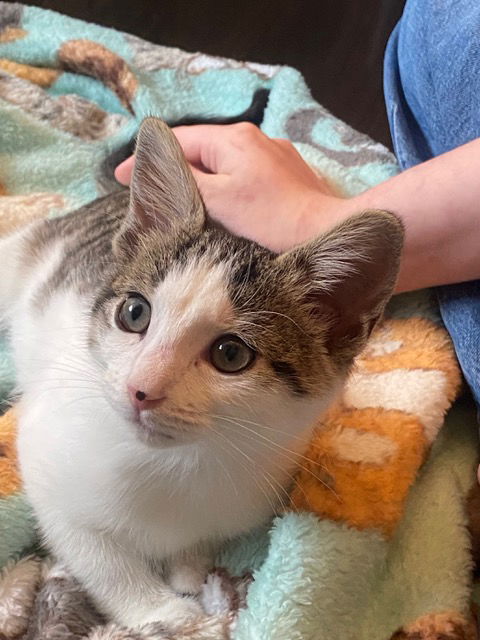 Pigeon was found in Celina on land near the donkey rescue. She was alone. She loves people and is very social and sweet. She will come when called and will happily follow you around. She loves to play and carries her toy mice around. When she gets tired, she will let you hold her and sleep in your lap. She loves attention. She wants to be friends with her foster's 4 adult cats, but they are not interested. She would love to have a friend and playmate.